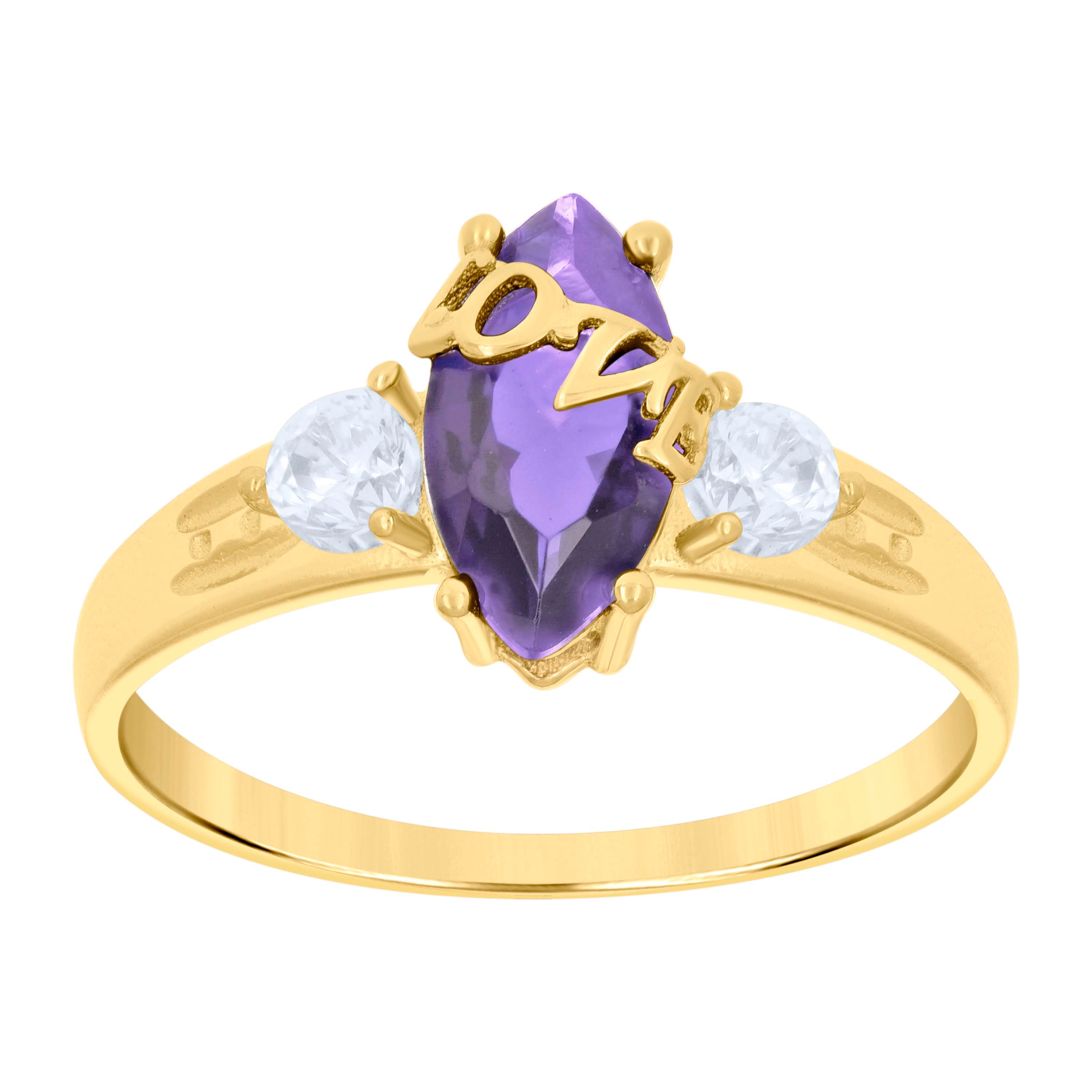 Indulge in timeless elegance with our 10Kt Gold CZ Ring, crafted from genuine 10kt yellow gold. This exquisite women's ring features a stunning combination of marquise and round cubic zirconia stones, dazzling in purple and white hues. The prong-set gems enhance the polished finish, creating a lustrous and captivating design. Weighing just 2.1 grams, with a height and width of 9.8MM, this delicate piece is perfect for those who cherish love and sophistication. Elevate your jewelry collection with this enchanting engagement ring, a true testament to beauty and grace.