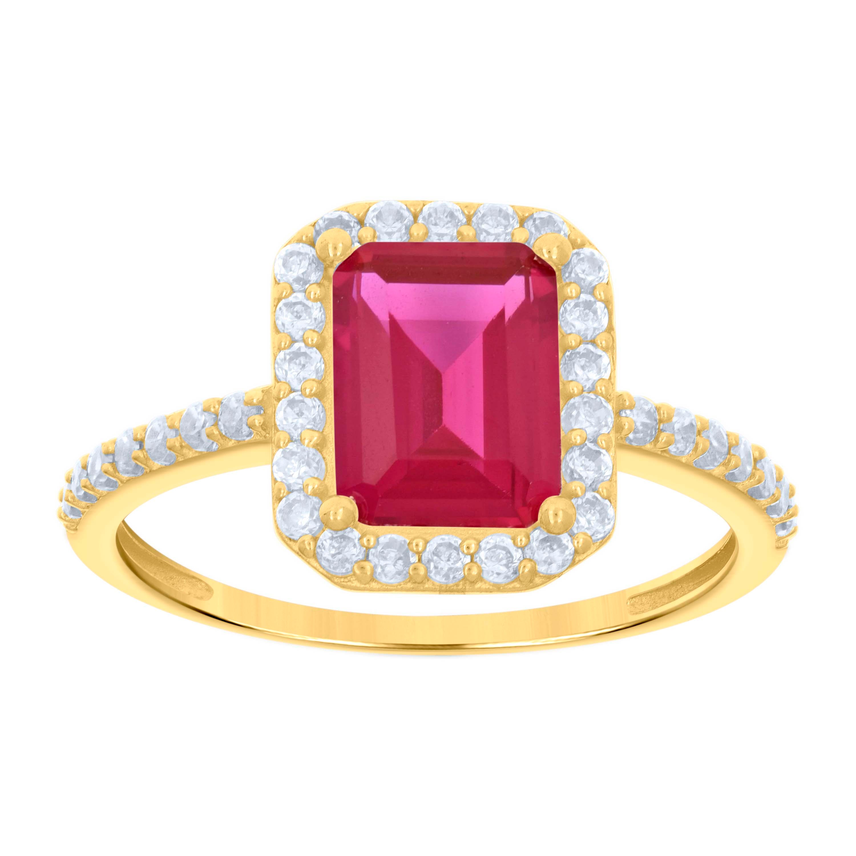 Elevate your elegance with our exquisite 10Kt Gold CZ Ring, a masterpiece of beauty and sophistication. Crafted from authentic 10kt yellow gold, this polished ring is a radiant symbol of love and commitment. At a delicate 2.2 grams, its substantial presence is both graceful and comfortable for everyday wear. The ring features a stunning prong setting that showcases a brilliant round white cubic zirconia alongside a captivating emerald-cut red cubic zirconia, creating a harmonious blend of sparkle and color. With a perfect height and width of 10.9MM, this piece is designed to make a bold yet elegant statement. Ideal for women who appreciate luxury and timeless style, this engagement ring is sure to capture hearts and turn heads.