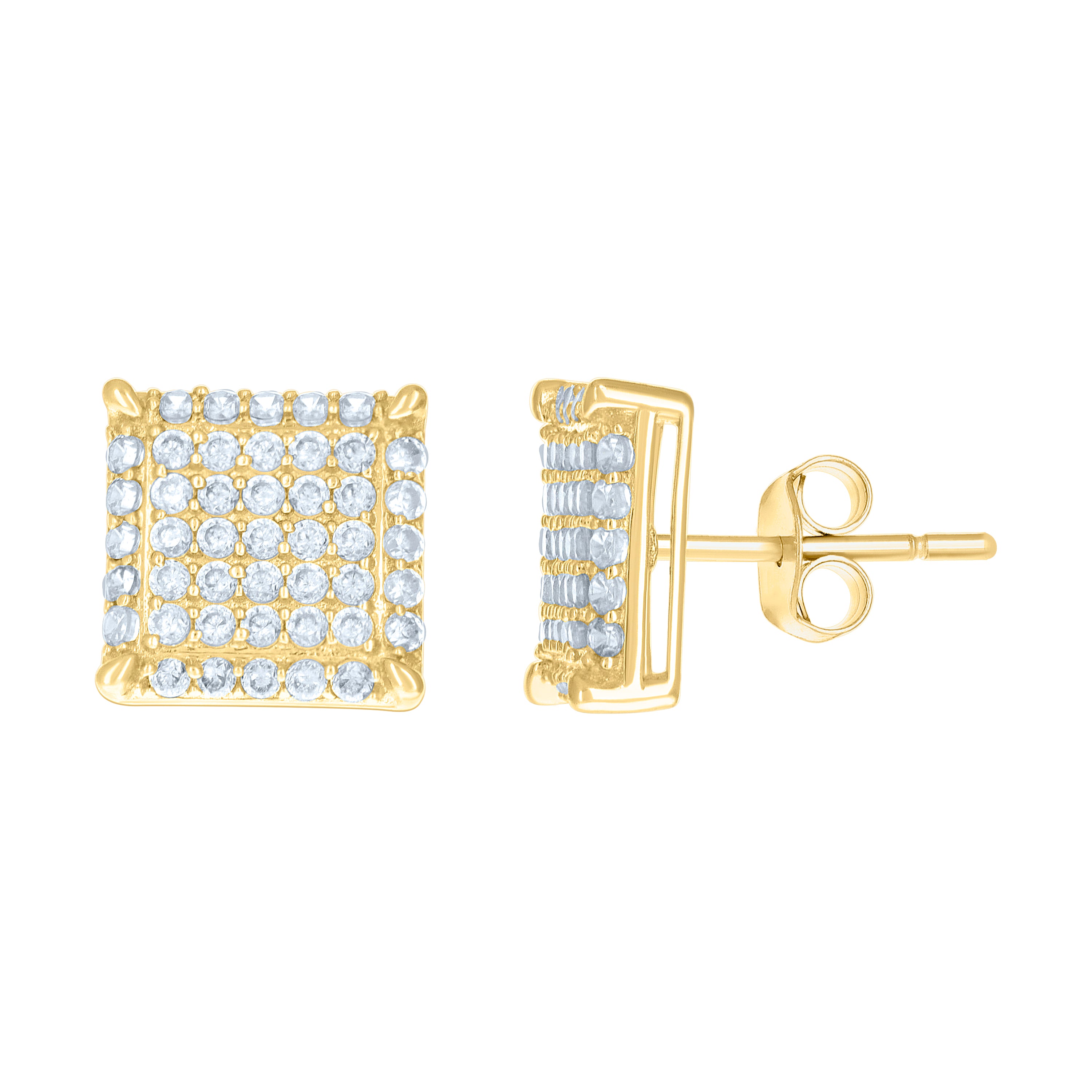 Introducing our exquisite 10Kt Gold CZ Earrings, crafted for the modern woman who appreciates timeless elegance. These stunning earrings are made from pure 10kt real yellow gold, weighing a delicate 2.5 grams, perfect for everyday luxury or special occasions. Featuring brilliant white cubic-zirconia stones in a classic round shape, prong-set to maximize their sparkle, these earrings catch the light beautifully with every movement. The polished finish enhances their sophisticated allure, while the 10MM square stud design adds a contemporary touch. The secure push back closure ensures comfort and ease of wear. Elevate your jewelry collection with these must-have earrings that combine quality, style, and affordability.