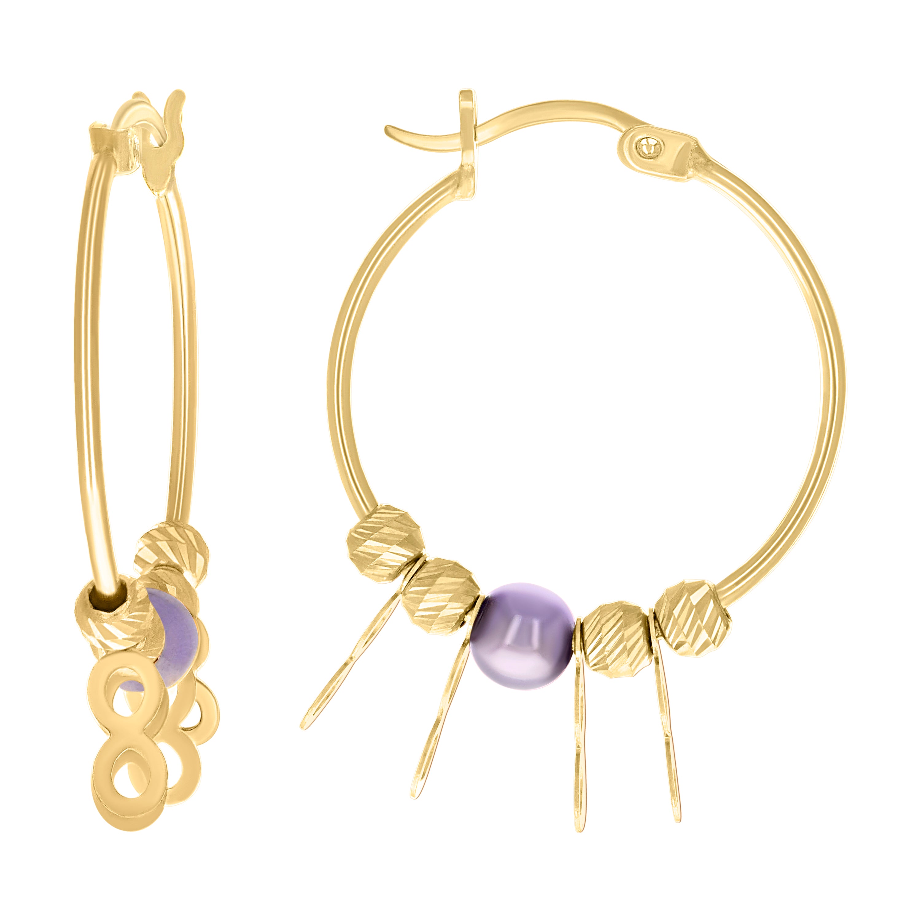 Elevate your elegance with our stunning 10Kt Gold Turkish Earrings. Crafted from authentic 10kt yellow gold, these earrings feature a mesmerizing diamond-cut finish that sparkles with every movement. The infinity design is gracefully adorned with purple beads, adding a pop of color and a hint of mystique to your style.