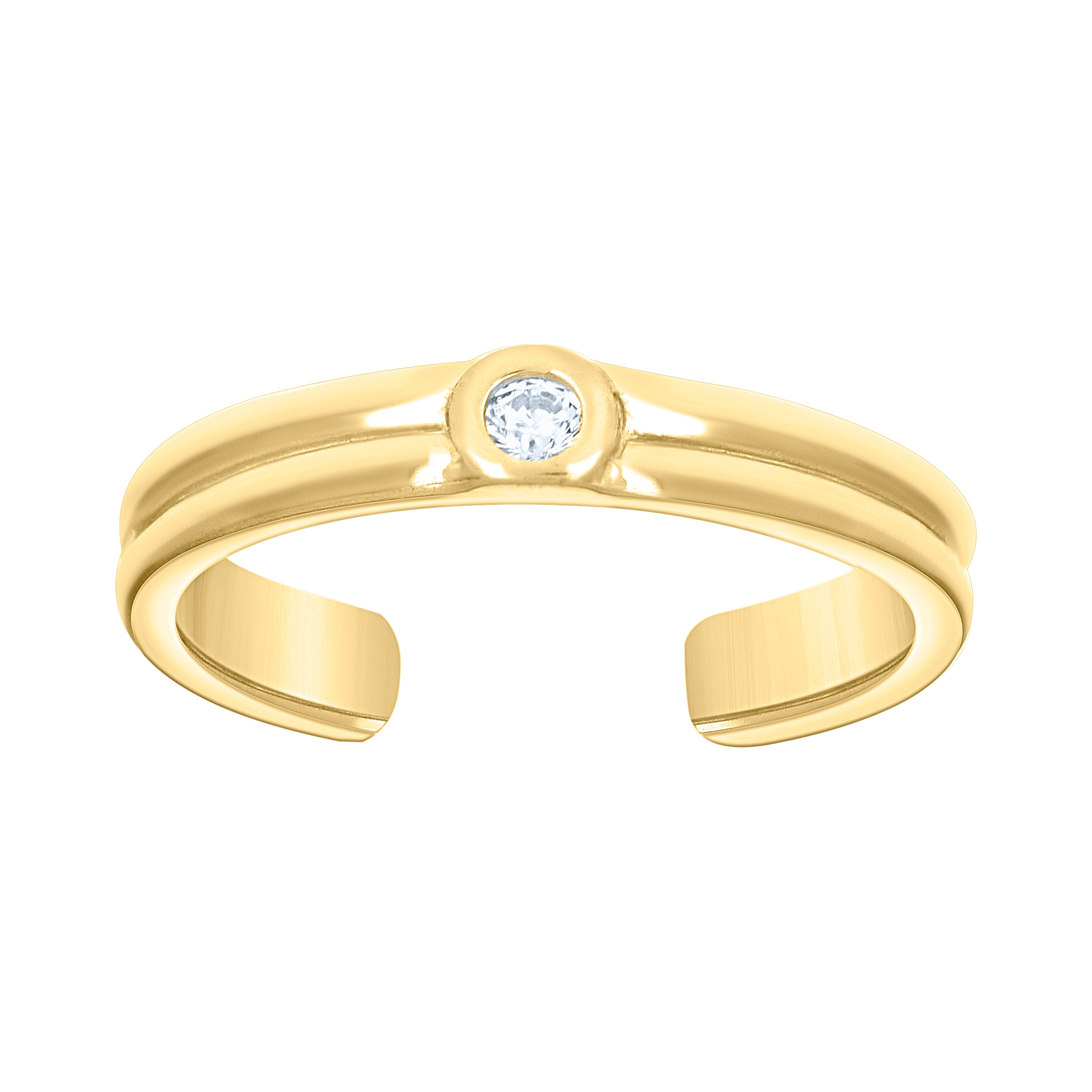 Introducing the epitome of elegance and sophistication, the 10Kt Gold CZ Toe Ring. Crafted from pure 10k real yellow gold, this exquisite toe ring is designed for the modern woman who appreciates timeless beauty. Weighing a delicate 1.1 grams, it adorns your toes with a subtle yet captivating charm. The polished finish enhances its radiant glow, while the bezel-set round white cubic zirconia adds a touch of sparkle. With dimensions of 2.2mm in height and width, this toe ring is the perfect blend of subtlety and style. Elevate your footwear fashion effortlessly with this stunning accessory.