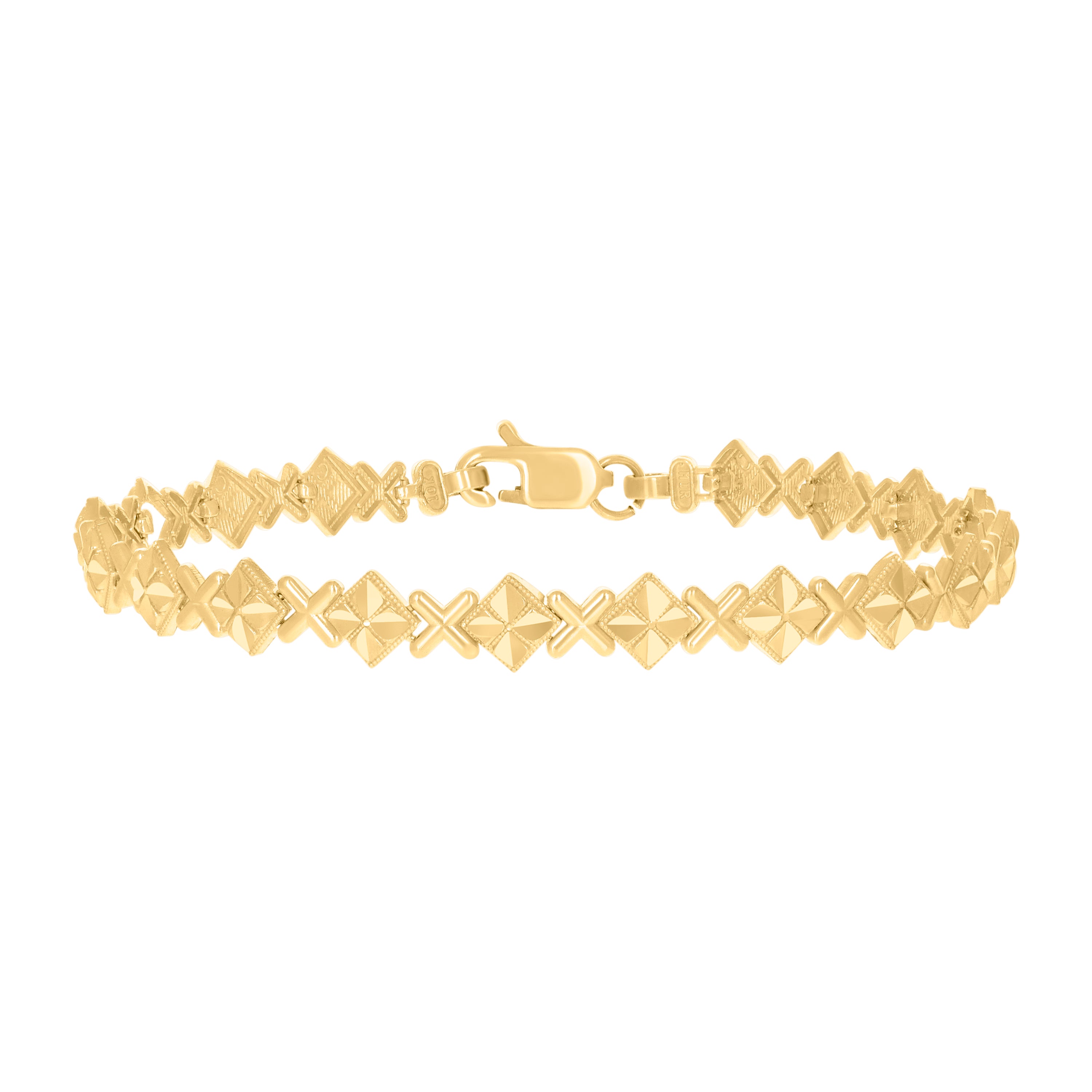 10kt Yellow Gold Womens Square Link Bracelet Size 7 Inches