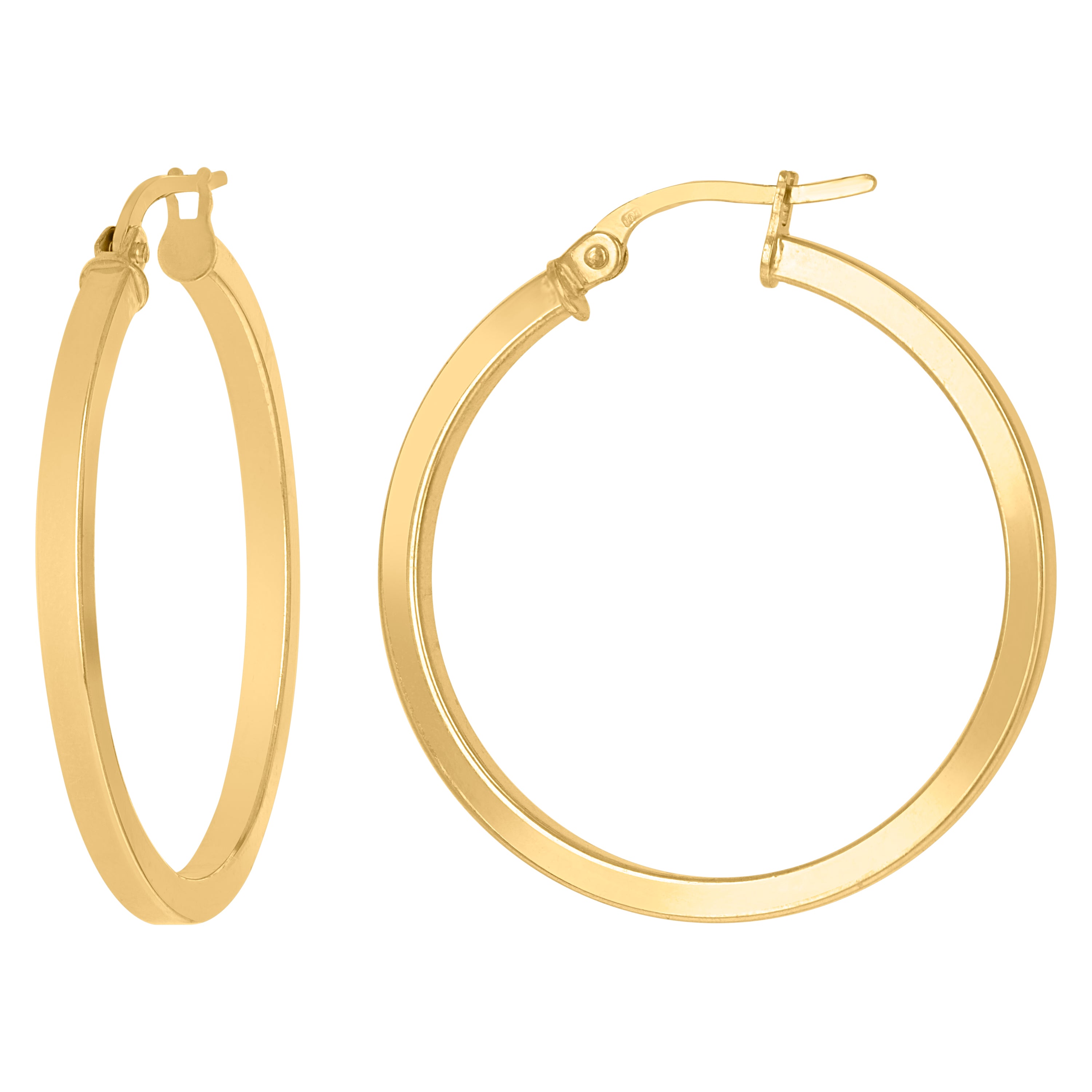 Elevate your style with these exquisite 10kt Yellow Gold Women's Square Tube Flat Hoop Earrings, a timeless accessory that effortlessly blends elegance with modern design. Meticulously crafted for the sophisticated woman, these earrings feature a sleek 2mm x 20mm dimension that offers a bold yet refined look. The hollow construction ensures a lightweight feel, making them perfect for all-day wear, while the hinged back clasp provides a secure fit and easy access. These hoop huggies, devoid of any embellishments such as cubic zirconia, emphasize the beauty of simplicity and the rich, warm glow of yellow gold. The square tube design adds a contemporary twist to traditional hoops, making them versatile enough to complement both casual and formal outfits. Whether you're accessorizing for a day at the office or an elegant evening out, these earrings will be your go-to piece for a touch of understated luxury.