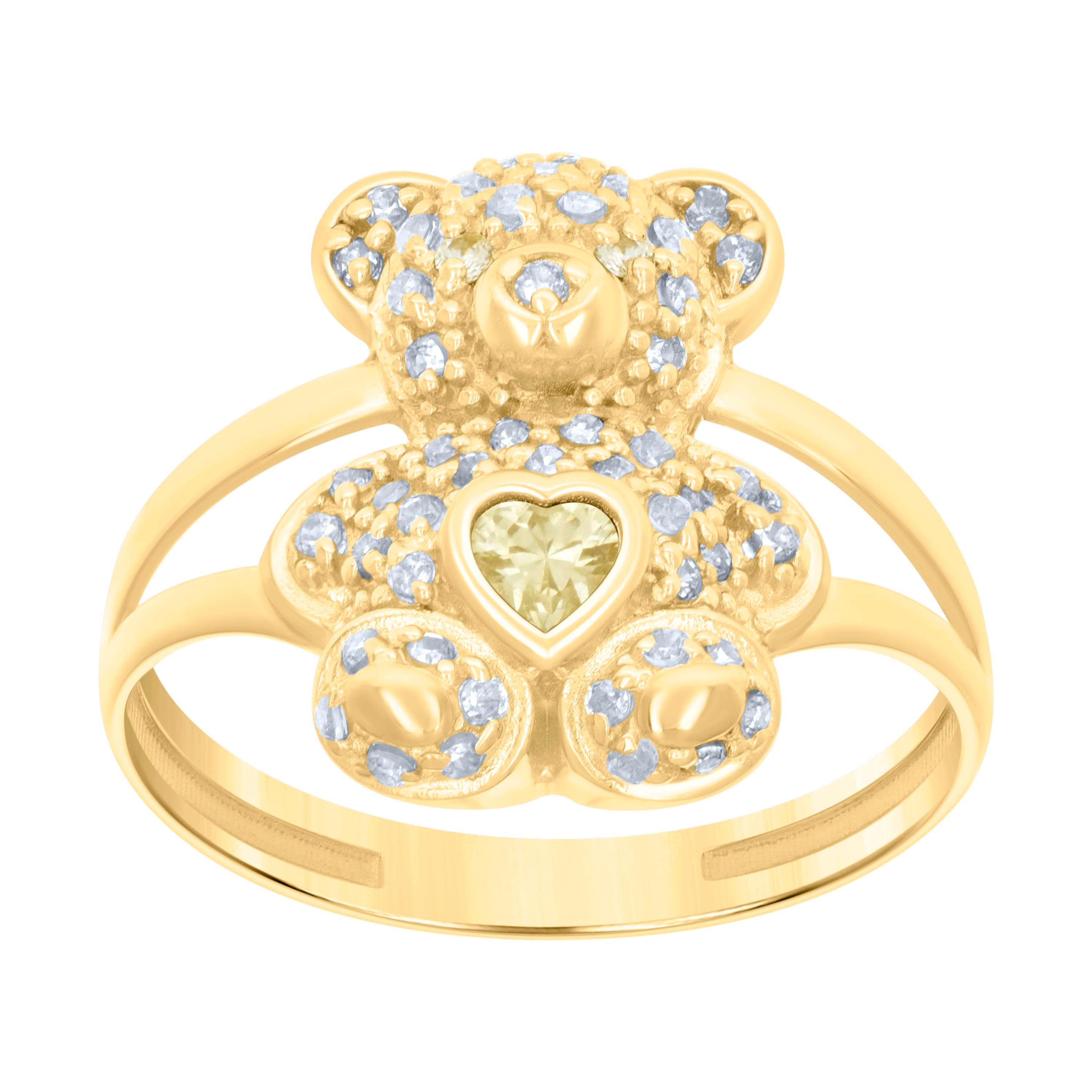 10kt Yellow Gold Womens Yellow White Heart Round Cubic-Zirconia August Birthstone Teddy Bear Ring