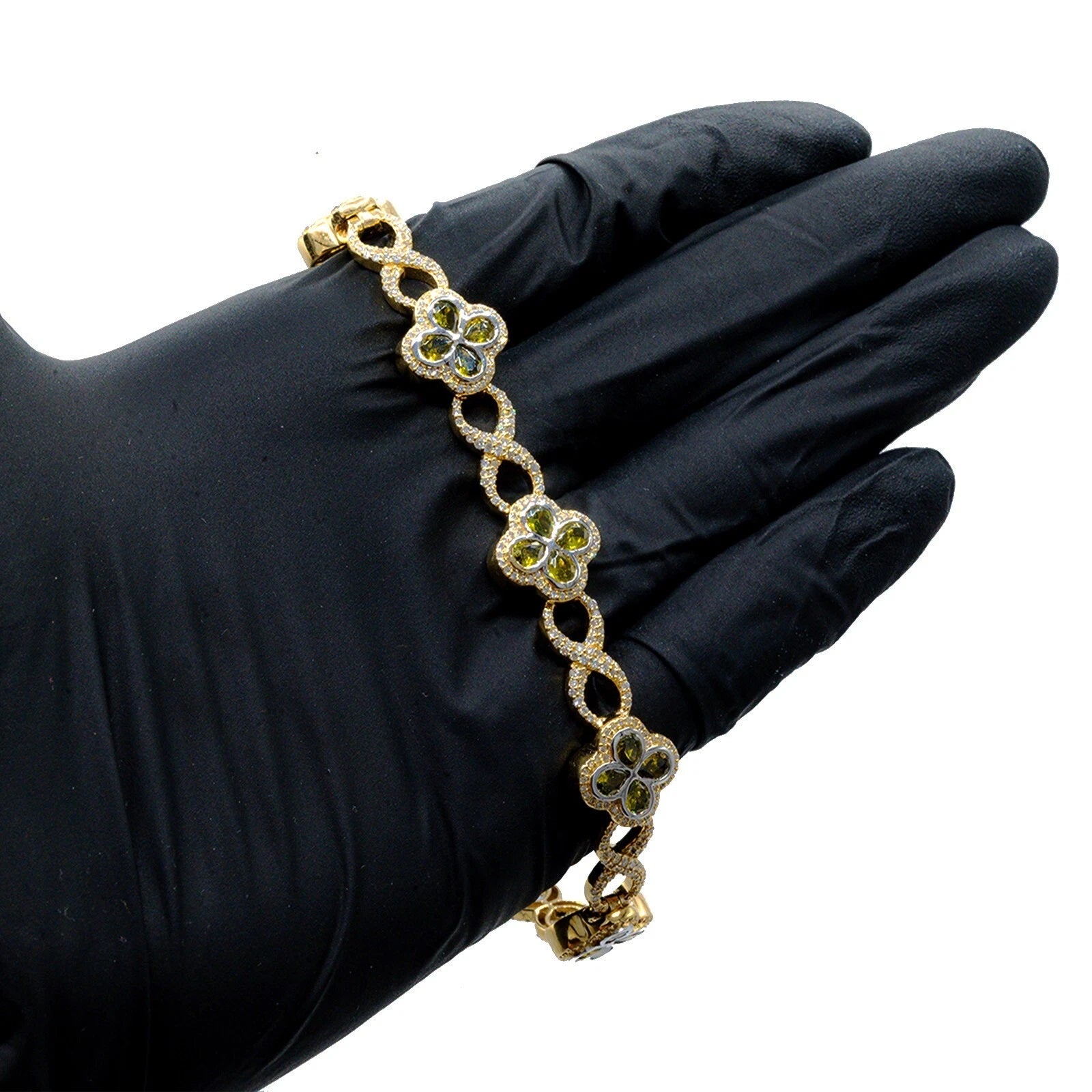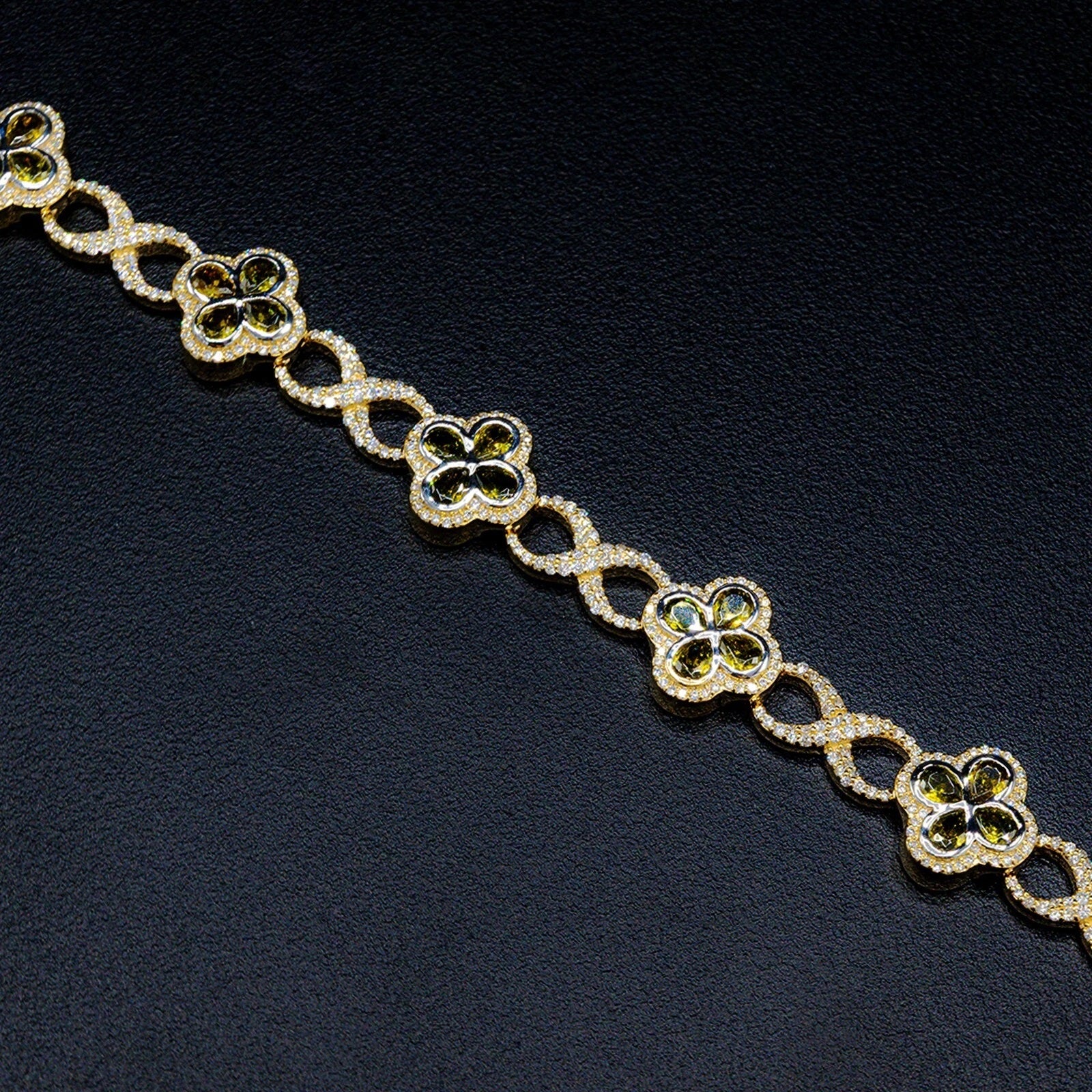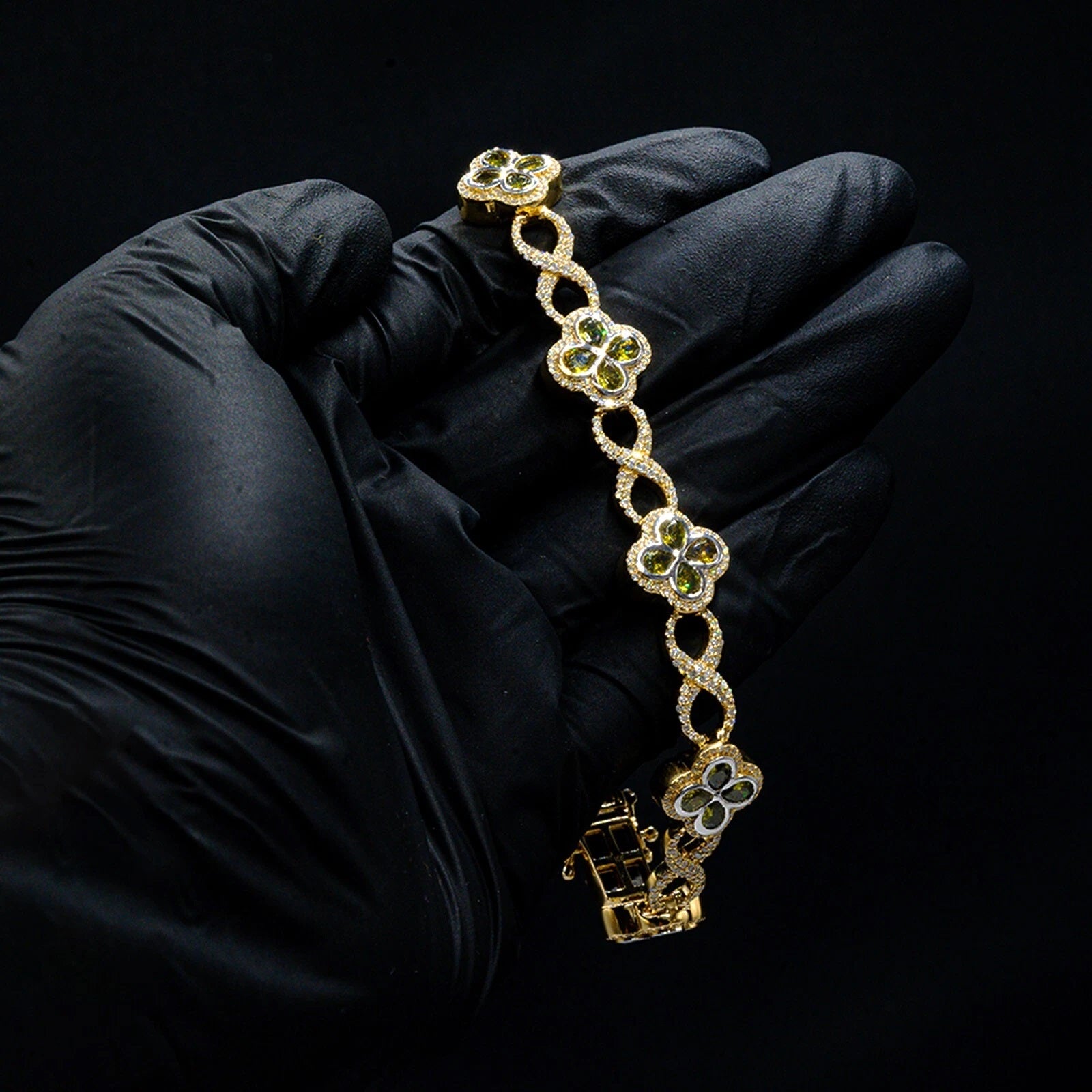 This 12.7MM 10k Yellow Gold Clove Infinity Link Bracelet features 2.6 CTW of natural diamonds in a polished finish. The bracelet is 8 inches in length and is designed in the style of an armlet. Stamped with 10k gold purity, it is suitable for special occasions like anniversaries, birthdays, engagements, and holidays such as Father's Day and Mother's Day. With a hip hop theme, this bracelet from SB Jewelers comes with an official appraisal document and is professionally tested for authenticity. Presented in a complimentary SB Premium Jewelry Box, this piece exudes elegance and style for women who appreciate fine jewelry.