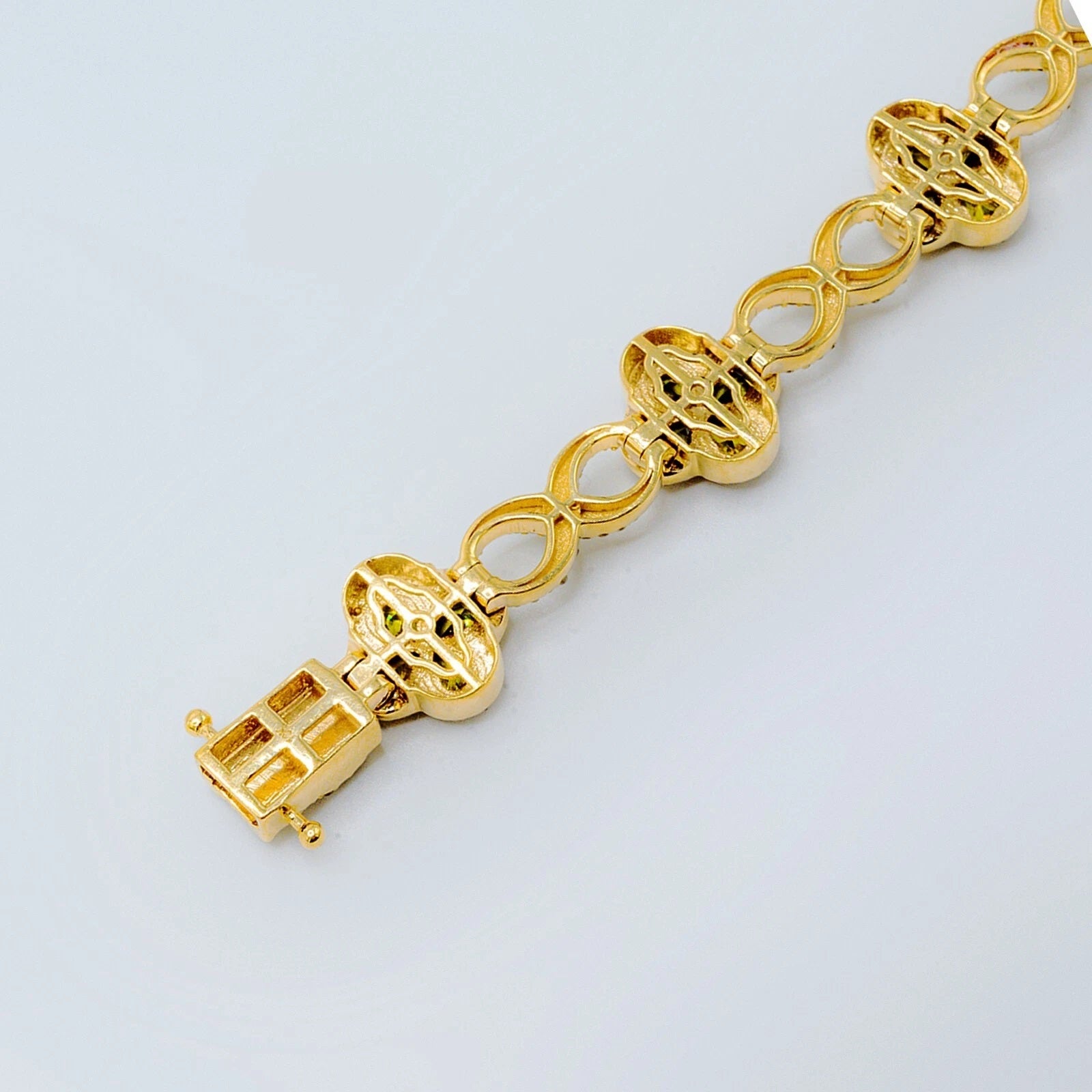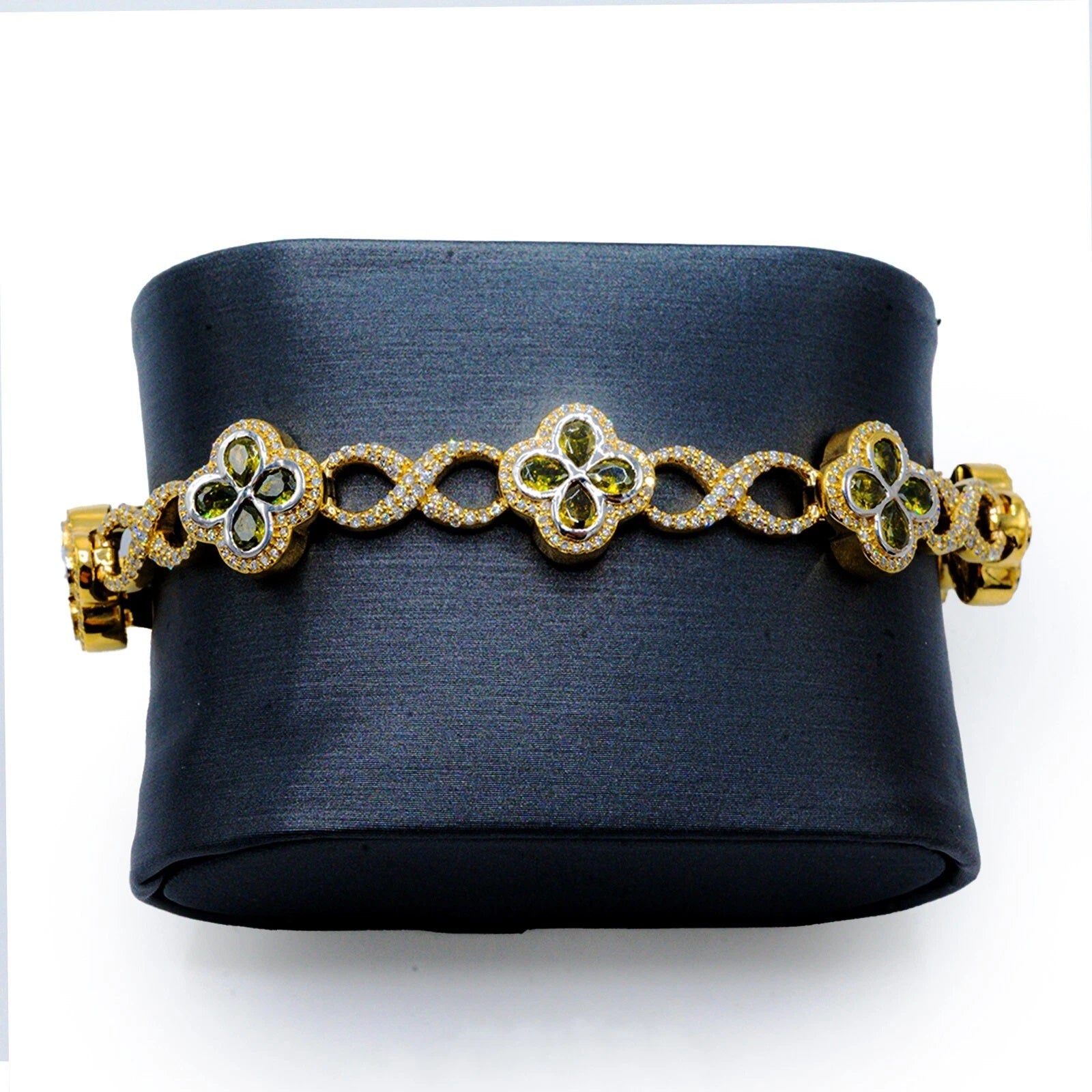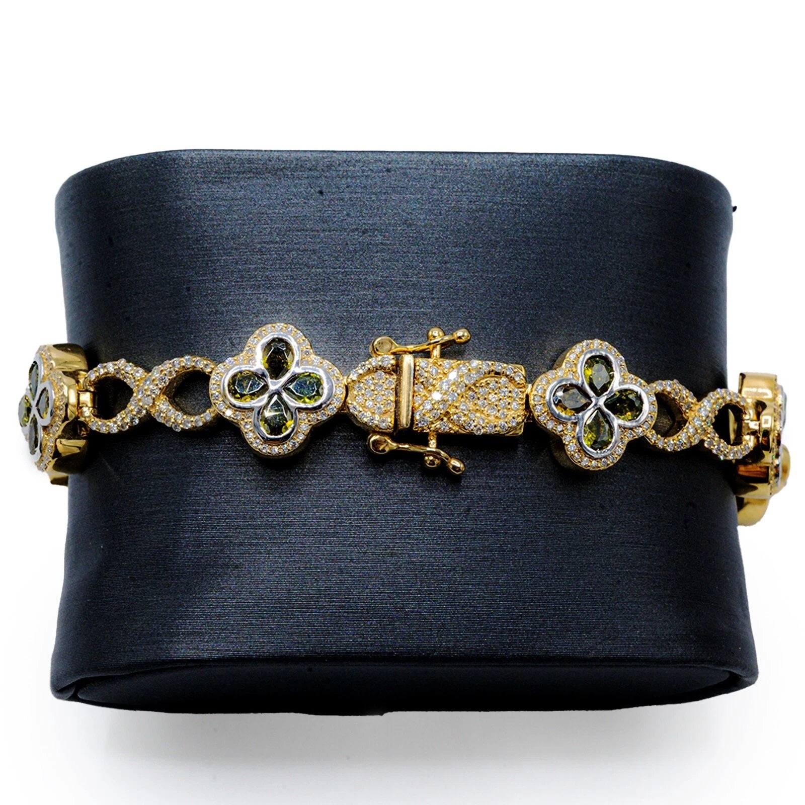 This 12.7MM 10k Yellow Gold Clove Infinity Link Bracelet features 2.6 CTW of natural diamonds in a polished finish. The bracelet is 8 inches in length and is designed in the style of an armlet. Stamped with 10k gold purity, it is suitable for special occasions like anniversaries, birthdays, engagements, and holidays such as Father's Day and Mother's Day. With a hip hop theme, this bracelet from SB Jewelers comes with an official appraisal document and is professionally tested for authenticity. Presented in a complimentary SB Premium Jewelry Box, this piece exudes elegance and style for women who appreciate fine jewelry.