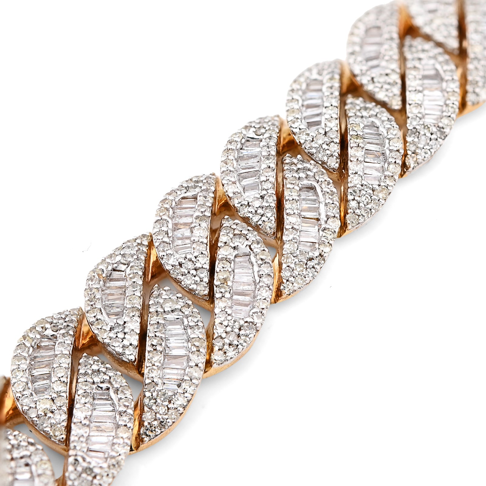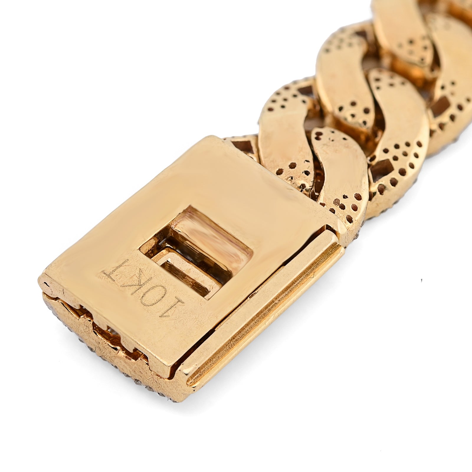Embrace unparalleled opulence with this extraordinary 10k yellow gold Cuban bracelet, a masterpiece designed for those with the most refined sensibilities. Featuring 6.8 carats of natural diamonds artfully arranged in round and baguette cuts, this bracelet showcases exceptional brilliance and intricate dimensional design. At an impressive 12mm width and weighing 40.3 grams, it delivers commanding presence with luxurious substance. The rich warmth of yellow gold creates a luminous backdrop that amplifies each diamond's fire and sparkle. A definitive statement of success and sophistication, this bracelet transcends trends to become a cherished heirloom, perfect for marking life's most significant moments or celebrating personal achievement.