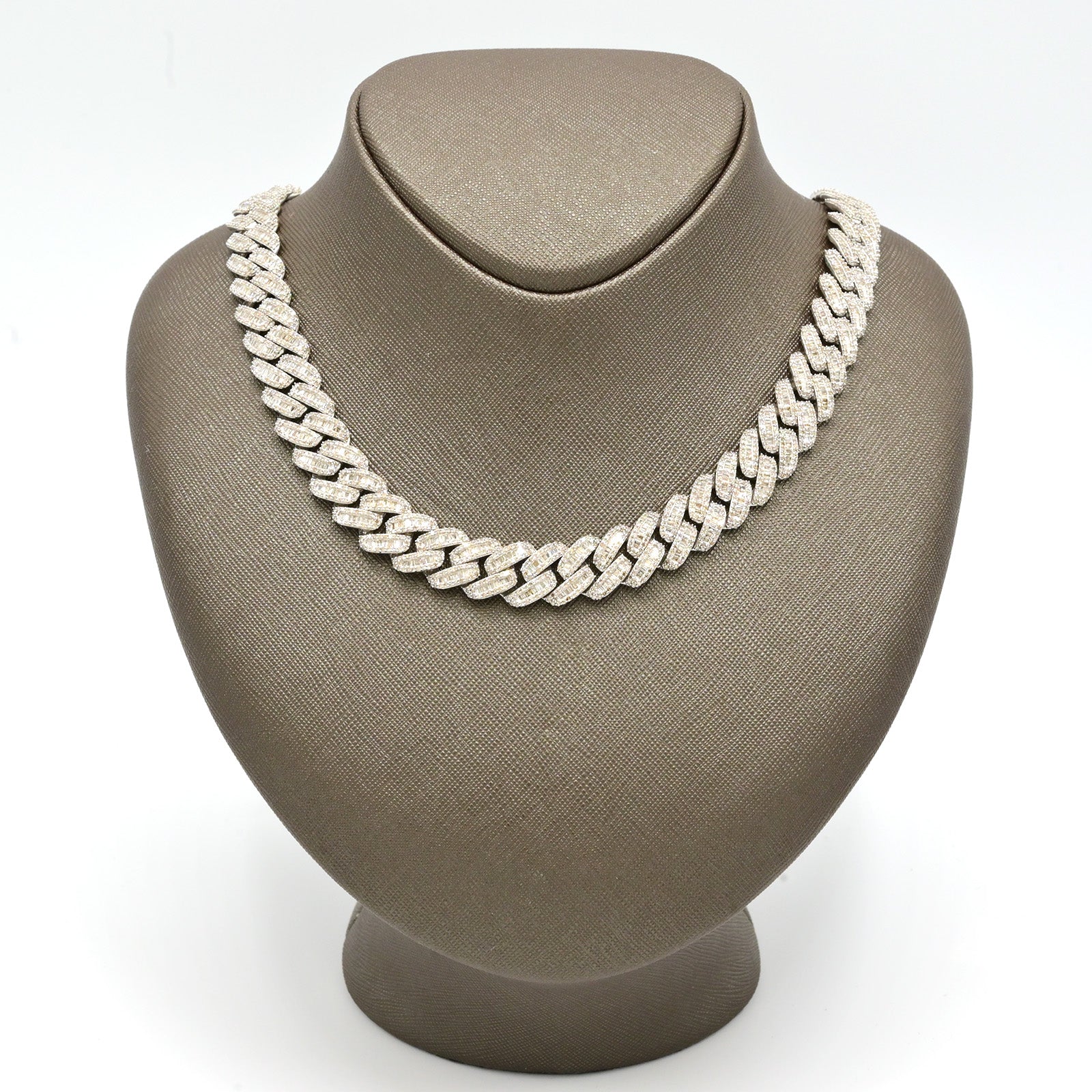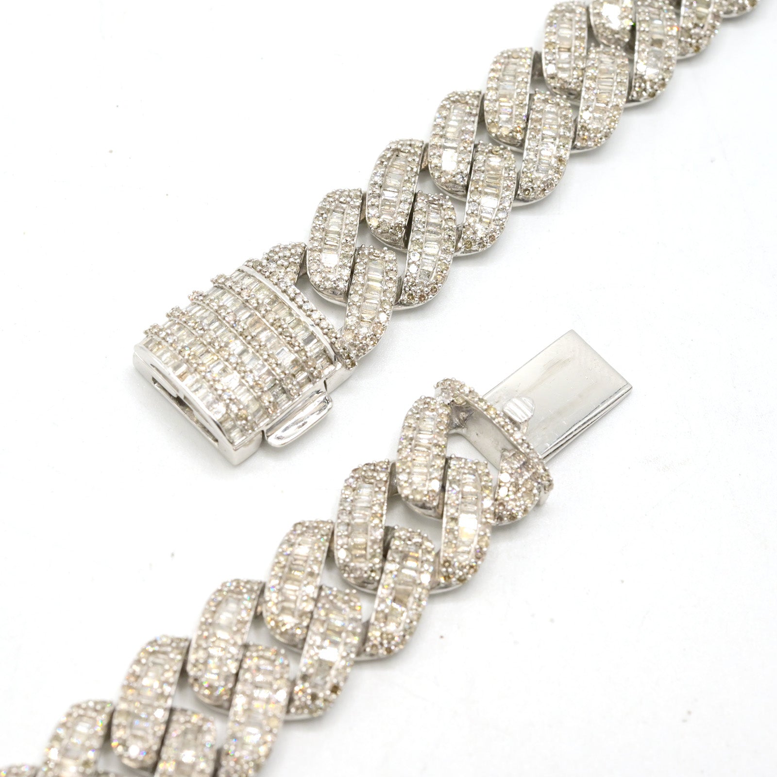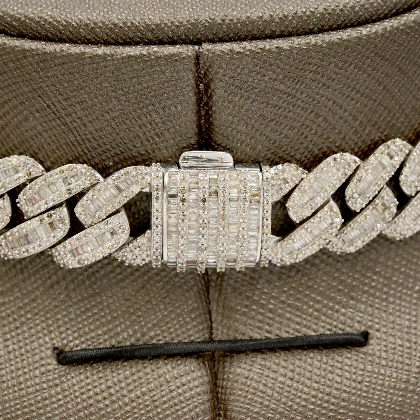 13MM 10k Yellow Gold 21 Inch 24CTW Round/Baguette Diamond Cuban Chain 74.4gms.