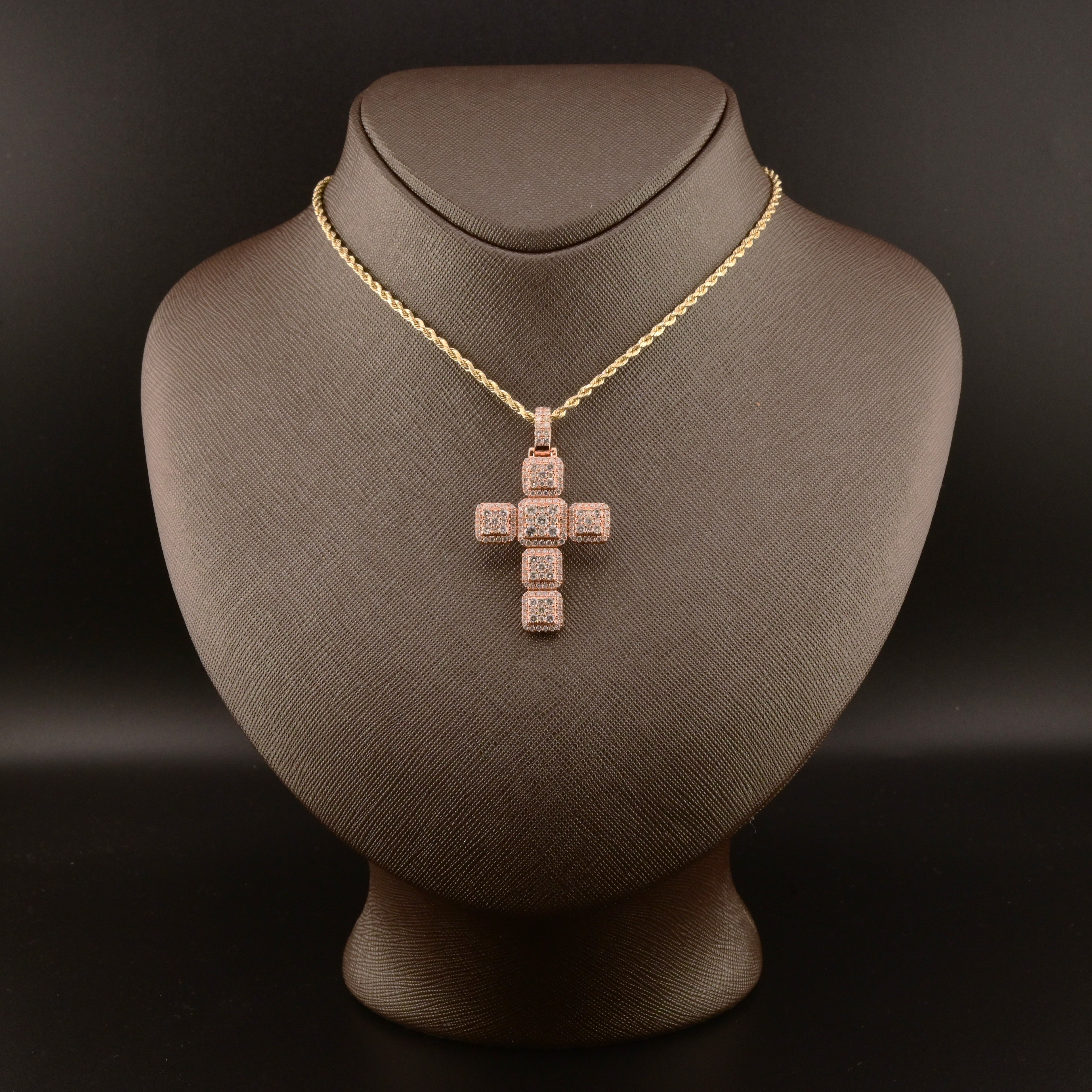 Express profound faith with this exquisite cross pendant in 14k rose gold, a luxurious celebration of spiritual devotion and refined elegance. Featuring an impressive 3.03 carats of natural round diamonds, the stones create exceptional sparkle and luminosity that honors the sacred symbol. Each diamond is meticulously selected for its exceptional clarity and brilliance, ensuring radiant beauty that captures light from every angle. At 6.7 grams, this substantial charm delivers commanding presence and superior craftsmanship in precious 14k gold. The romantic rose gold setting provides a warm, contemporary backdrop that enhances the diamonds' natural fire while offering lasting durability. A meaningful devotional piece that celebrates faith with uncompromising luxury and timeless sophistication.