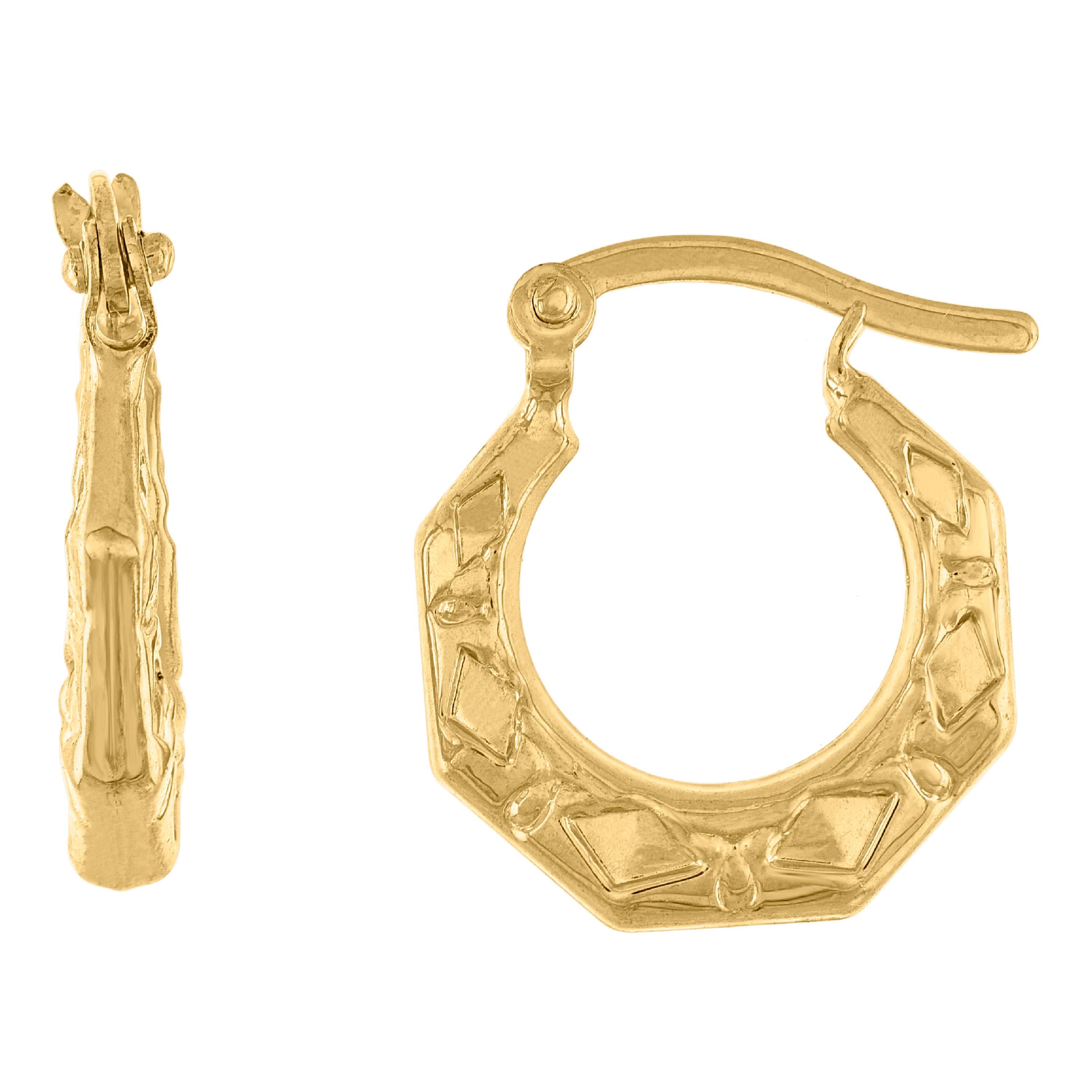 14Kt Gold Womens Polished Hexagon Textured 17.1Mm Huggie Hoop Earrings