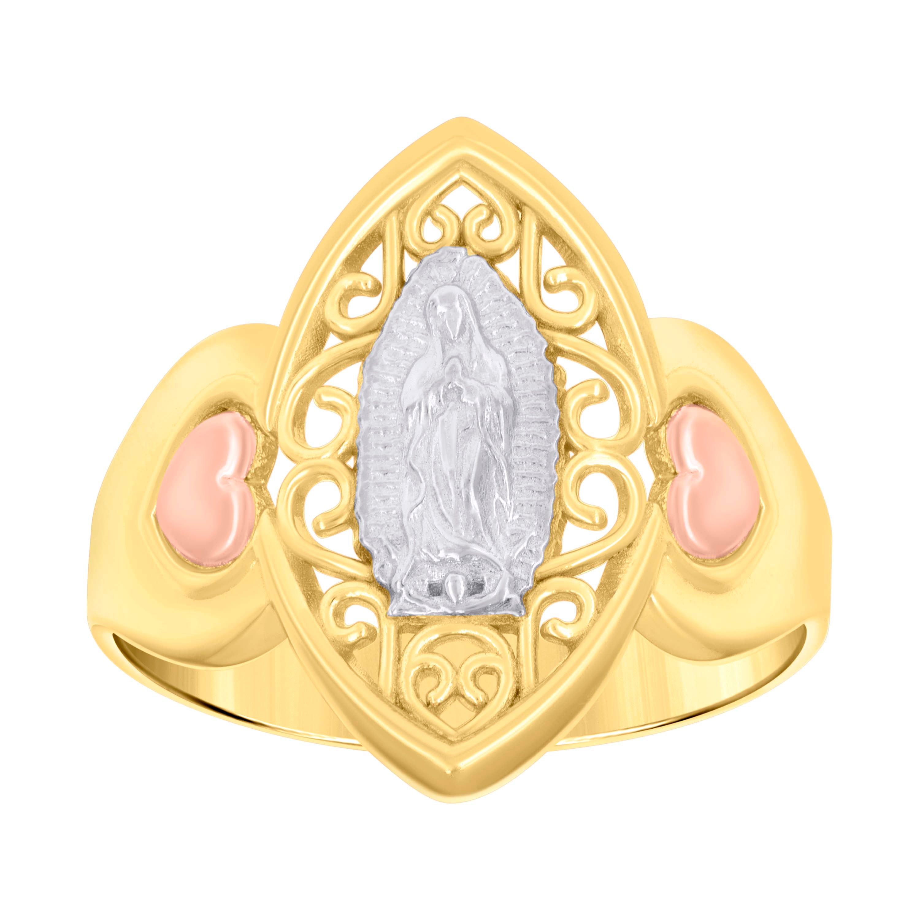 14Kt Gold Womens Tri-Color Guadalupe Mary Heart Sz7 Religious Band Ring