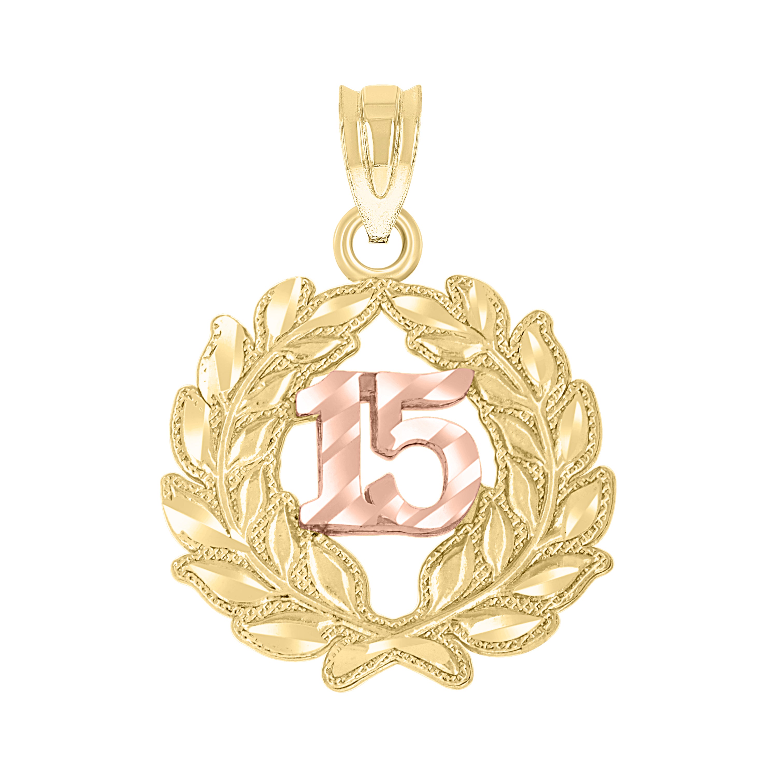 14Kt Gold Womens Two-Tone 15 Anos Quinceanera Pendant Charm