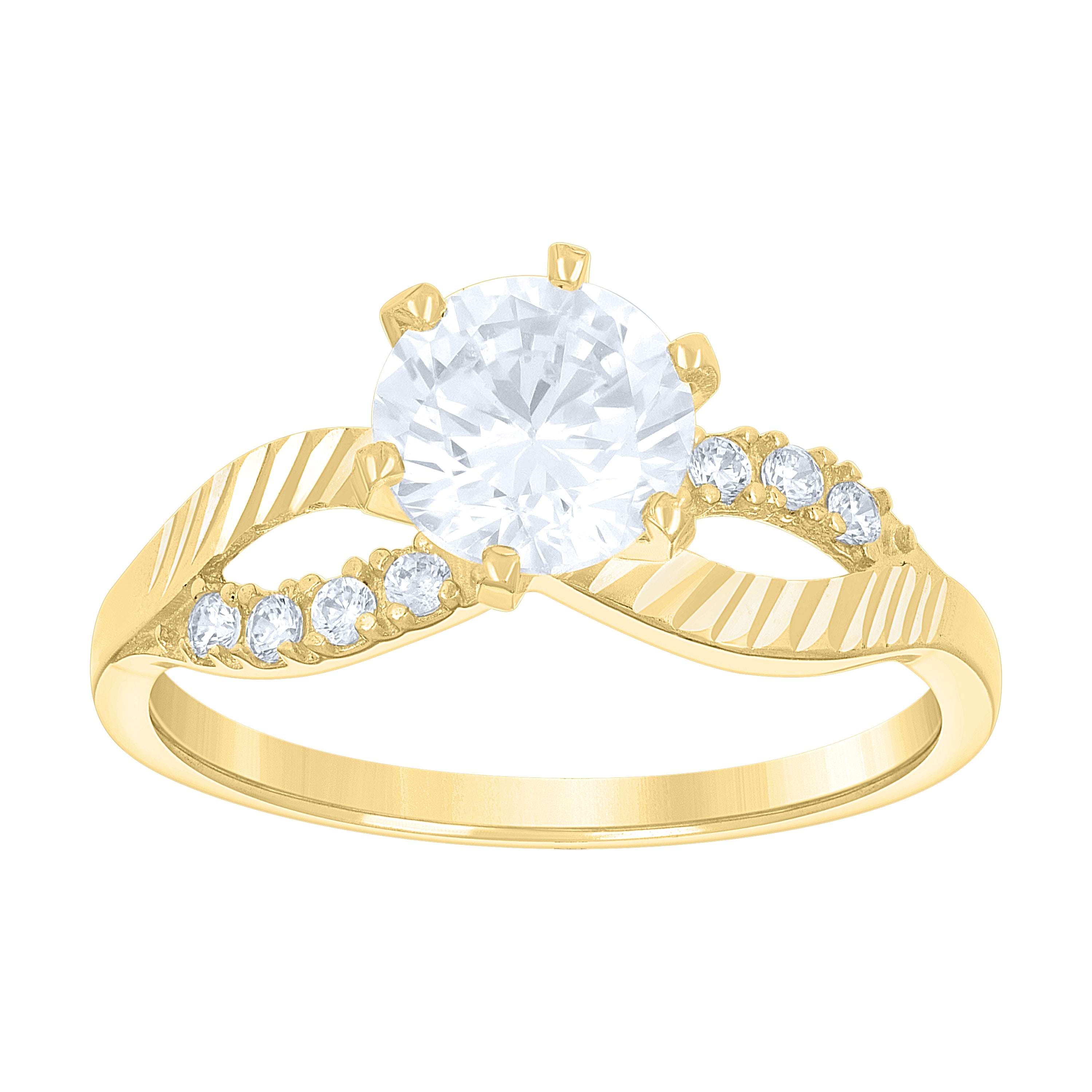 14Kt Gold Womens Two-Tone Cz Diamond-Cut Loop Center Round-Cut Stone Wedding Engagement Band Ring