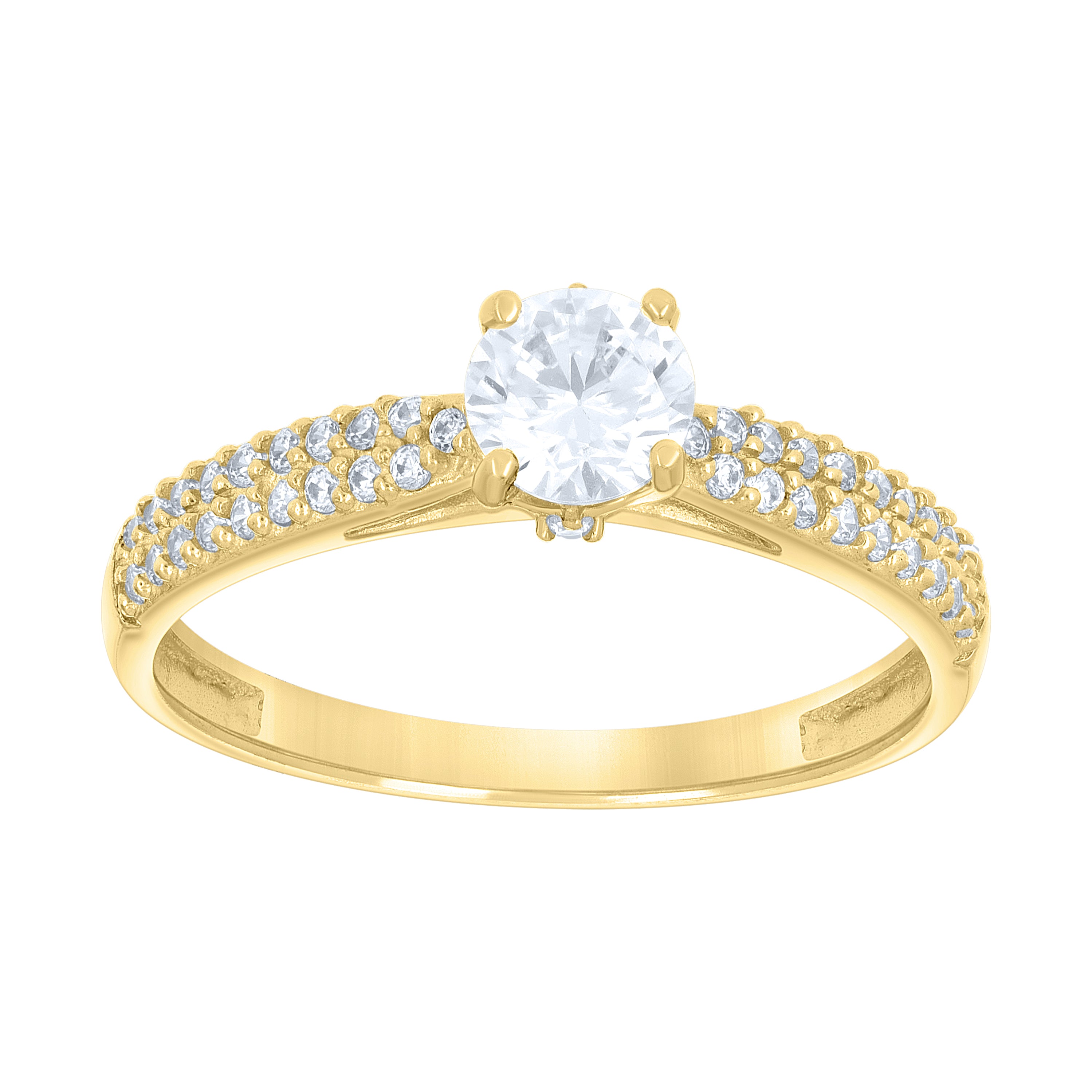 Celebrate your love with this exquisite 14Kt Gold Women's Two-Tone Engagement Band Ring. Featuring a stunning array of round-cut, white cubic zirconia stones, elegantly set in two rows with a polished finish. This 1.8-gram masterpiece boasts a cluster closure and a sophisticated prong setting, offering timeless elegance and brilliance. With a height of 6.1MM and a sleek width of 2.3MM, this ring is the perfect symbol of enduring commitment and style.