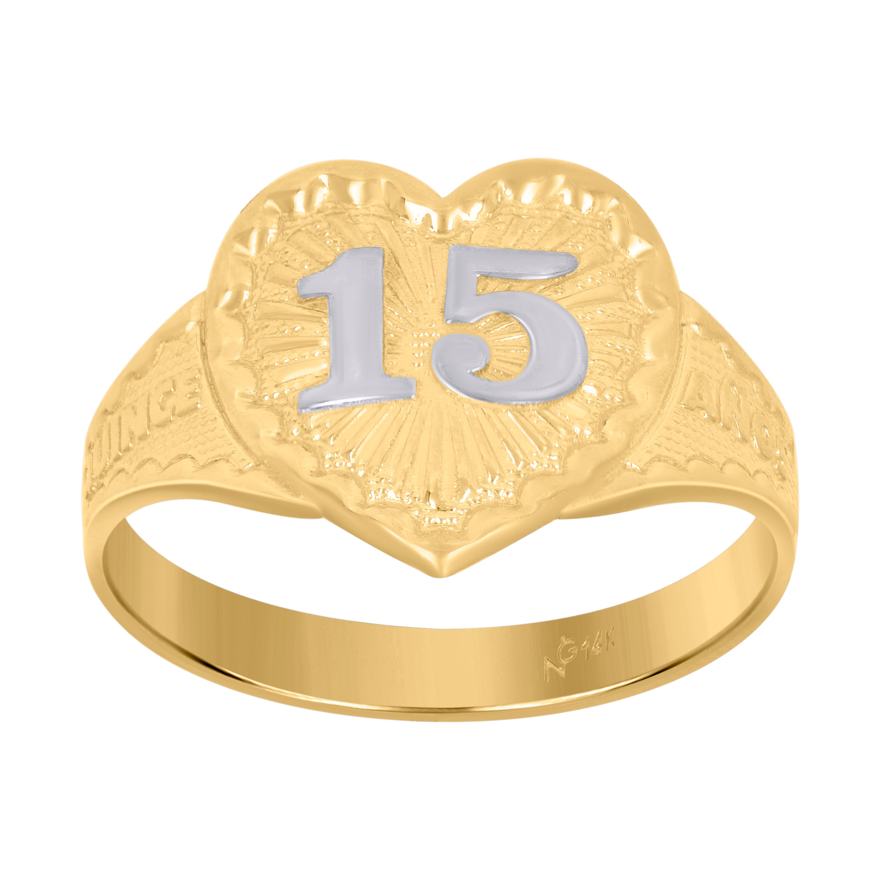 14Kt Gold Womens Two-Tone Diamond-Cut 15 Anos Sz7 Heart Quinceanera Band Ring