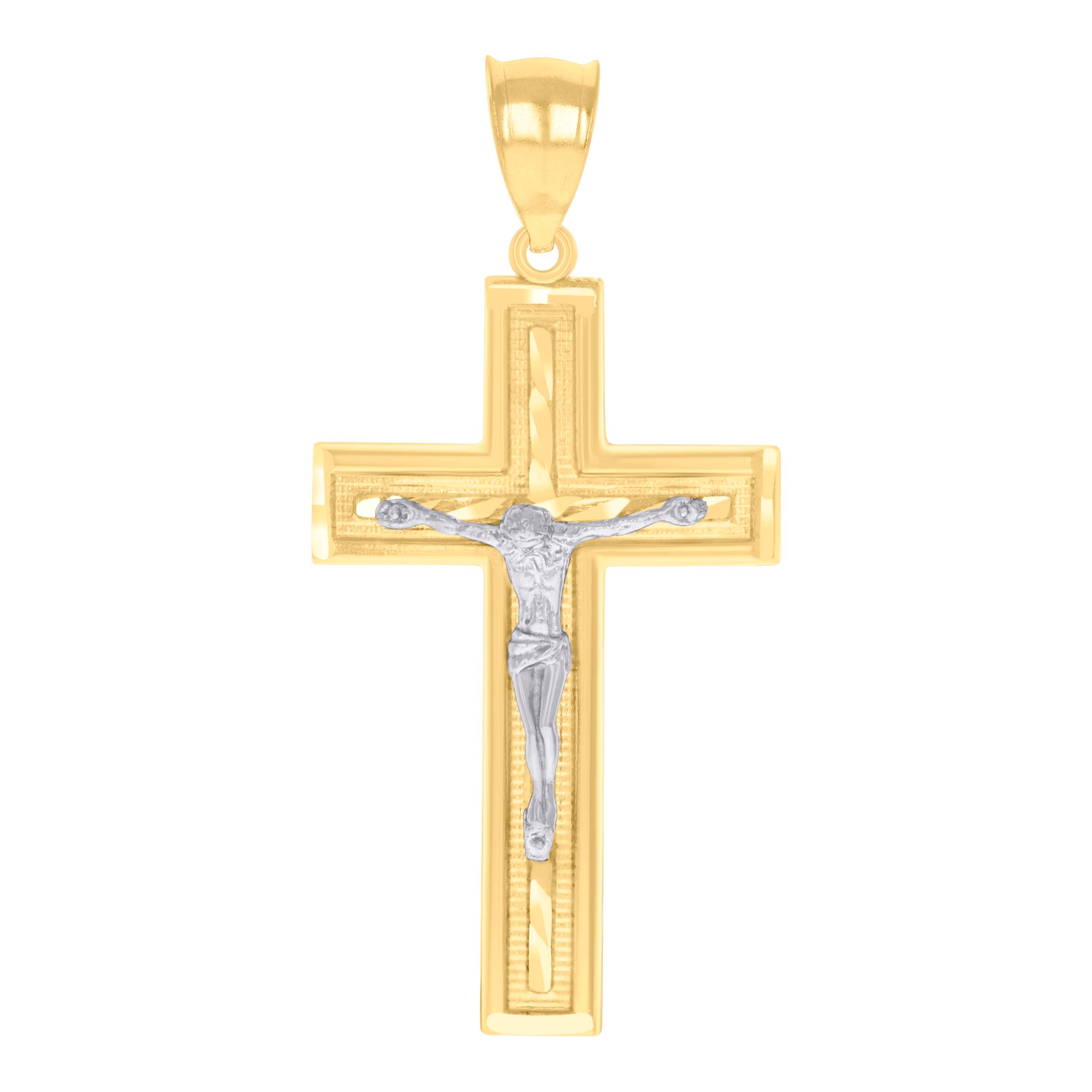 14Kt Gold Womens Two-Tone Diamond-Cut Cross Crucifix Jesus Ht:55.4Mm Pendant Charm