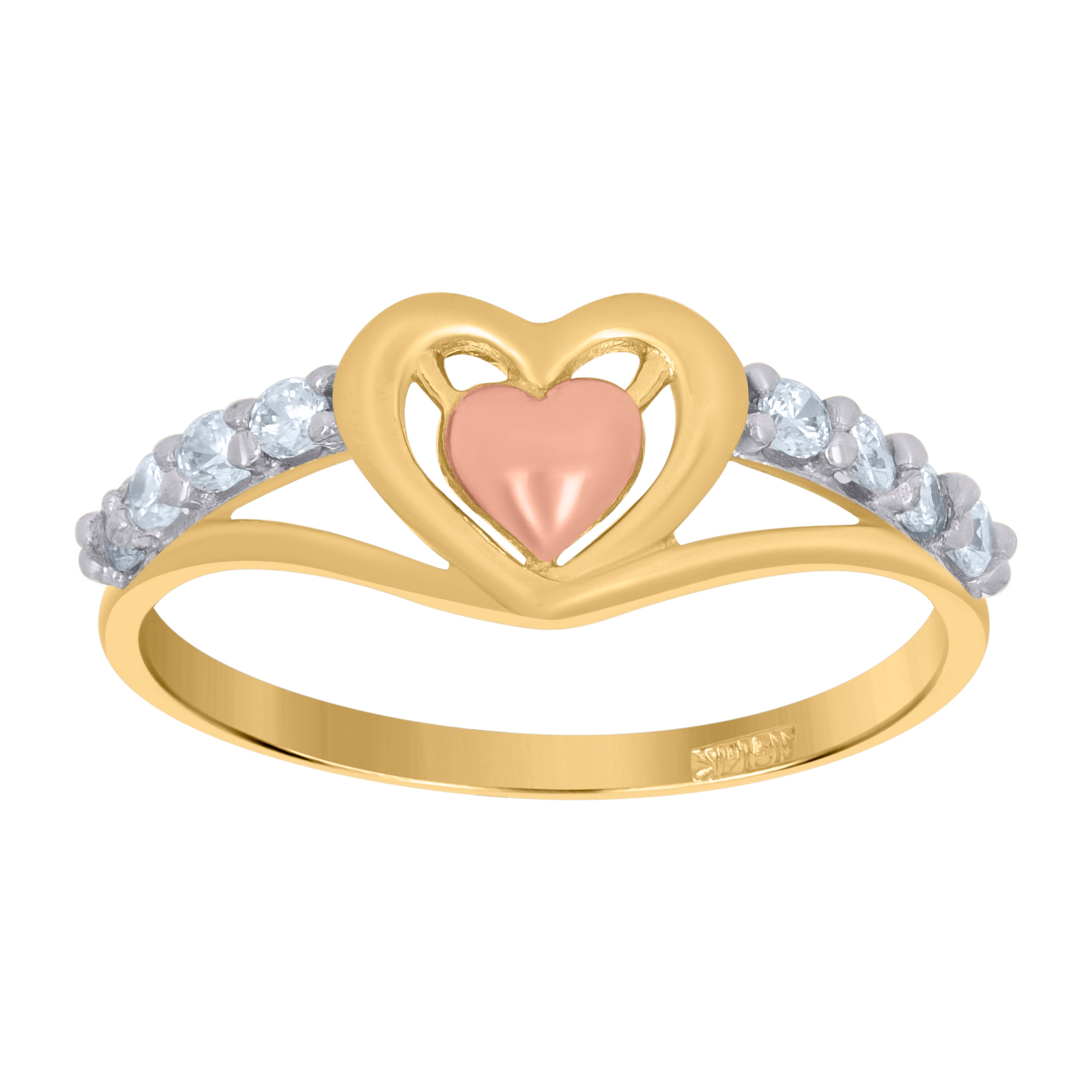 14Kt Tri-Color Gold Womens Cubic Zirconia Heart Engagement Ring