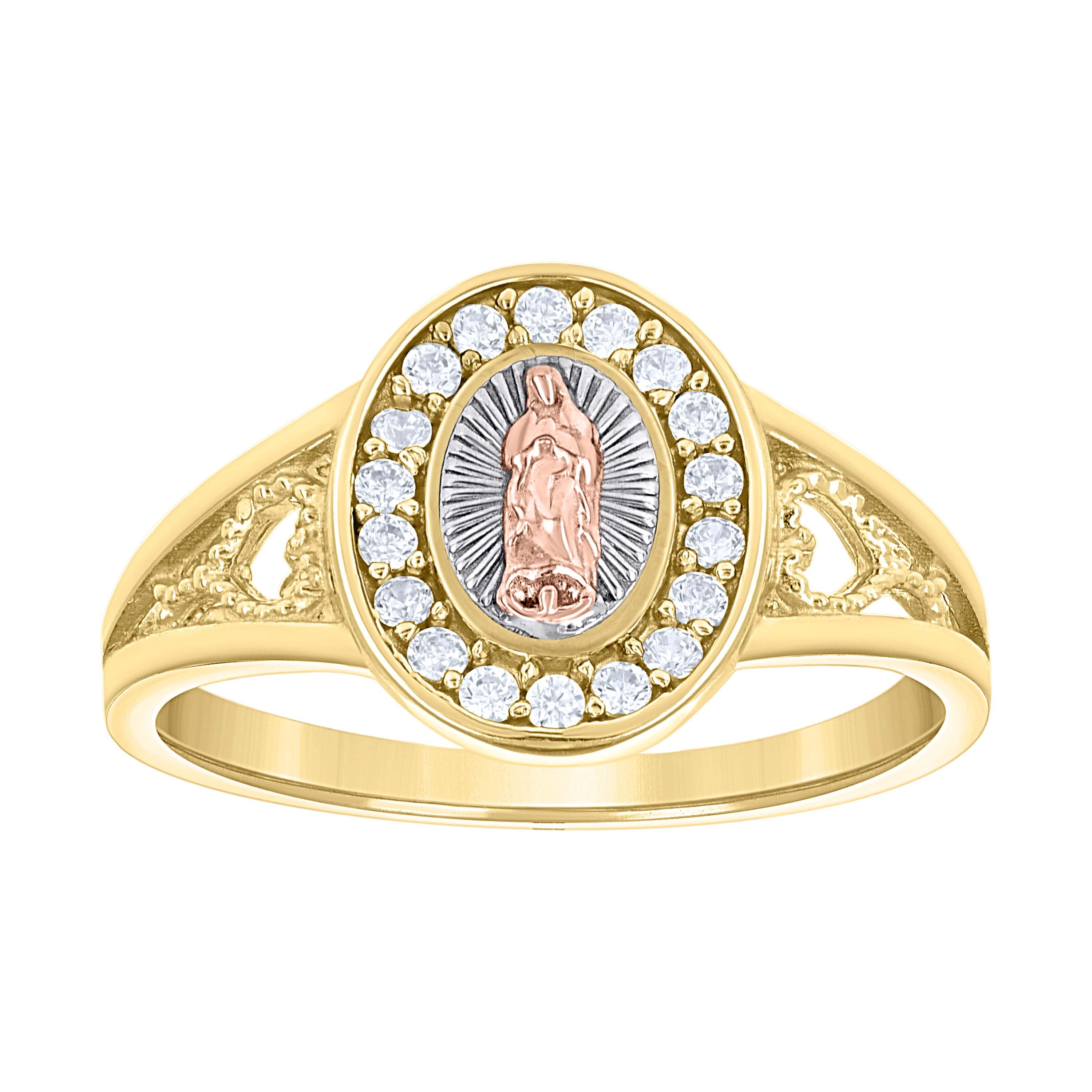 14kt Tri-Color Gold Womens Cubic-Zirconia Oval Guadalupe Religious Ring