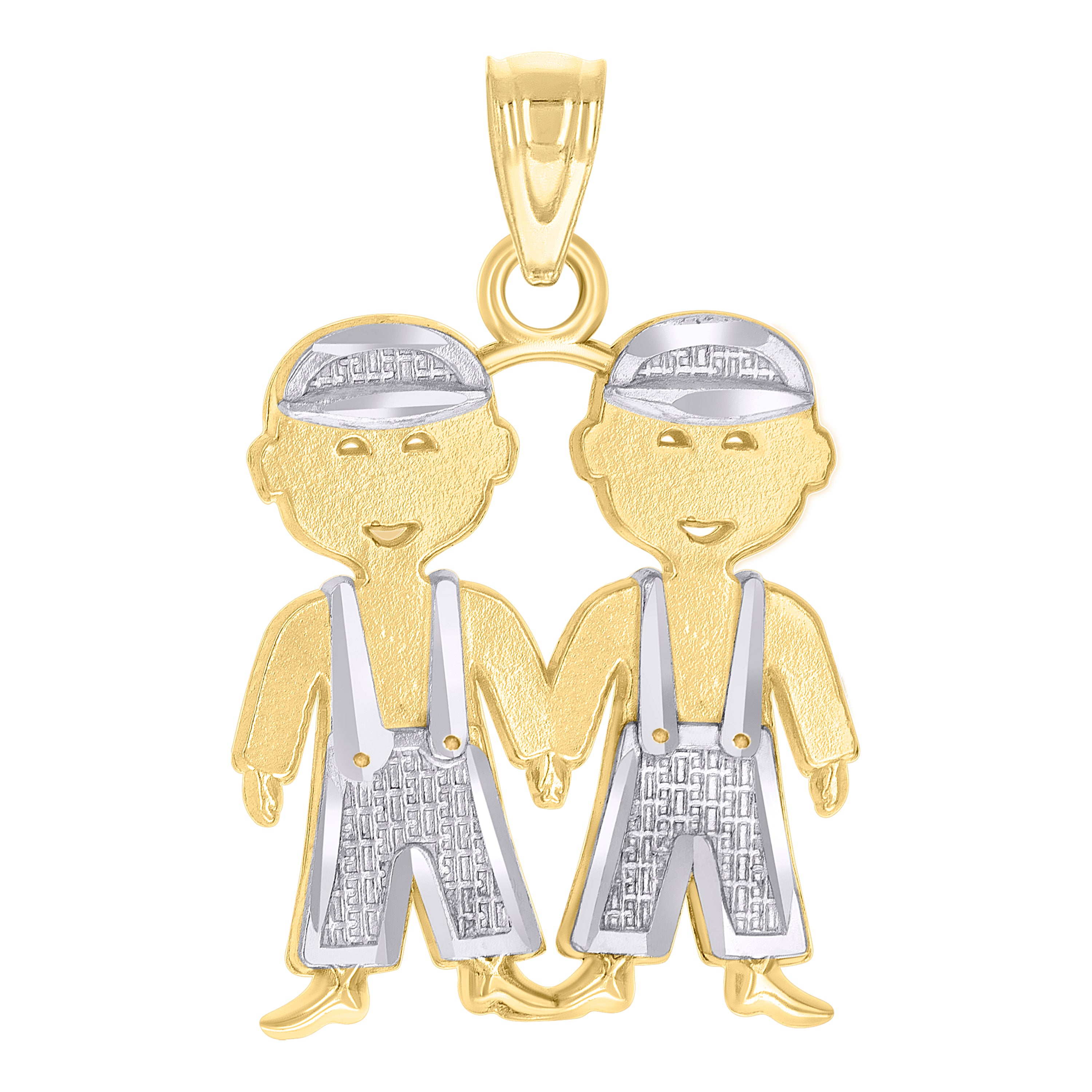 14Kt Two-Tone Gold Baby Diamond-Cut Textured Toddler Two Twin Boys Charm Baby Pendant