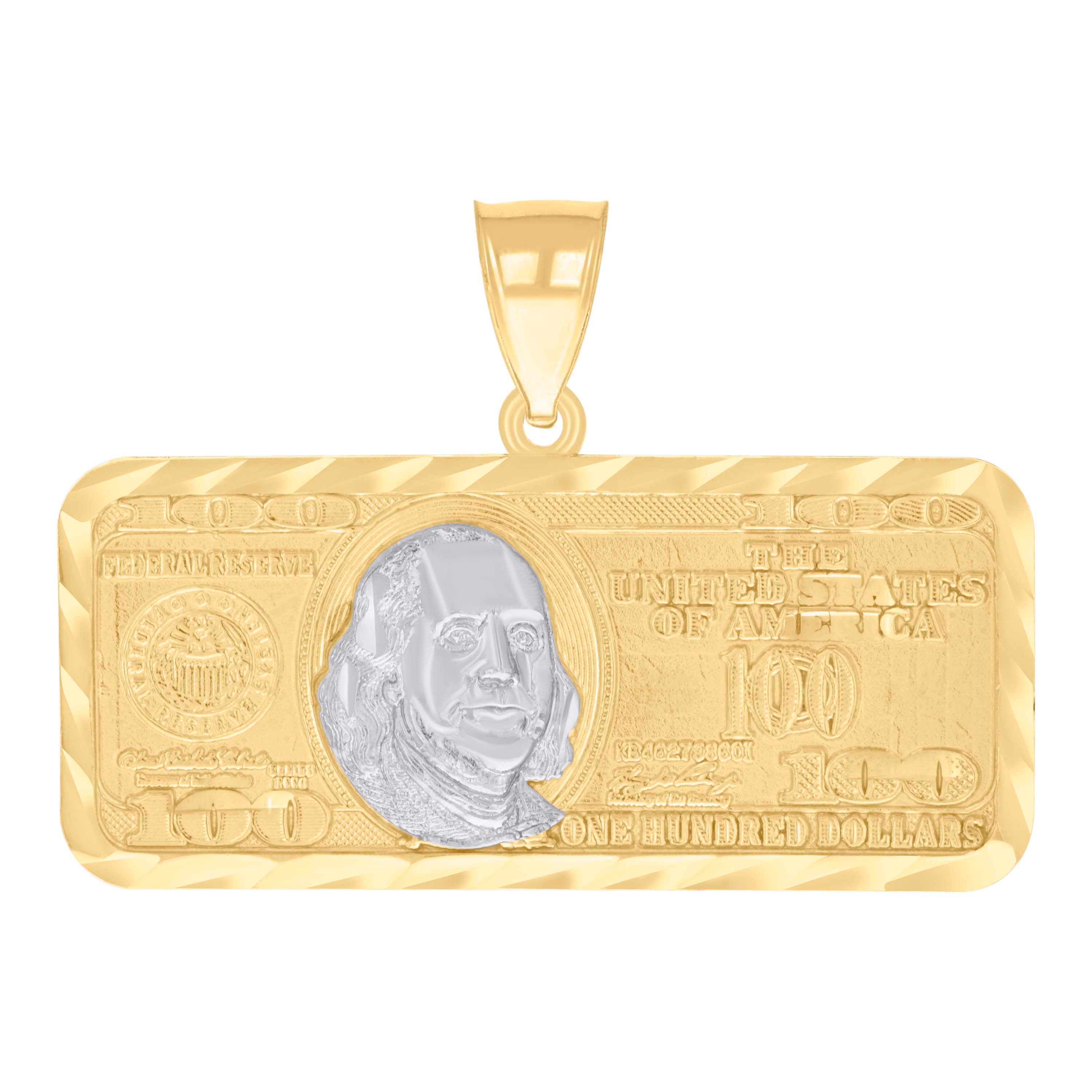 14kt Two-tone Gold Mens 100 Dollar Bill Currency Fashion Charm Pendant