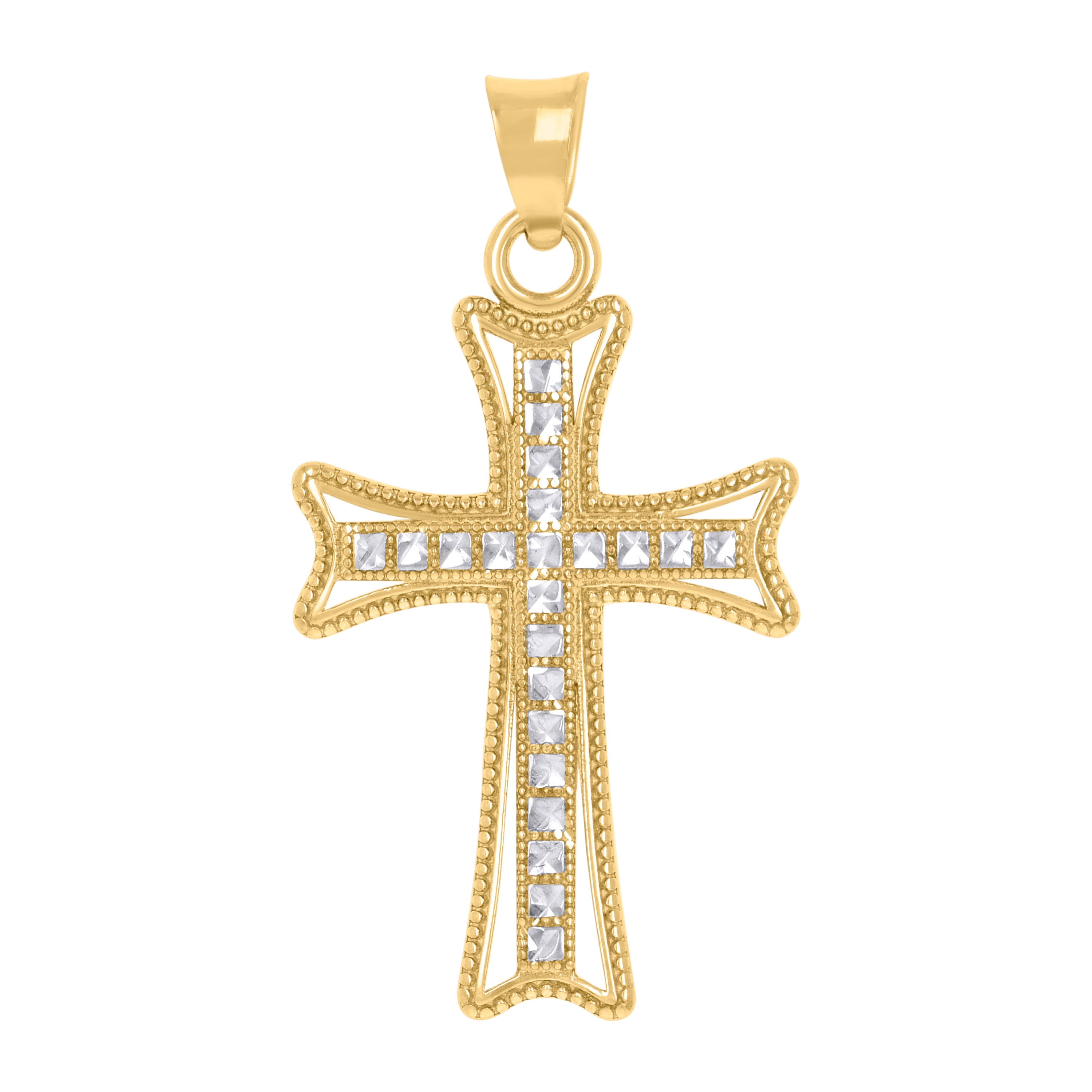 14Kt Two-Tone Gold Mens Cross Religious Charm Pendant
