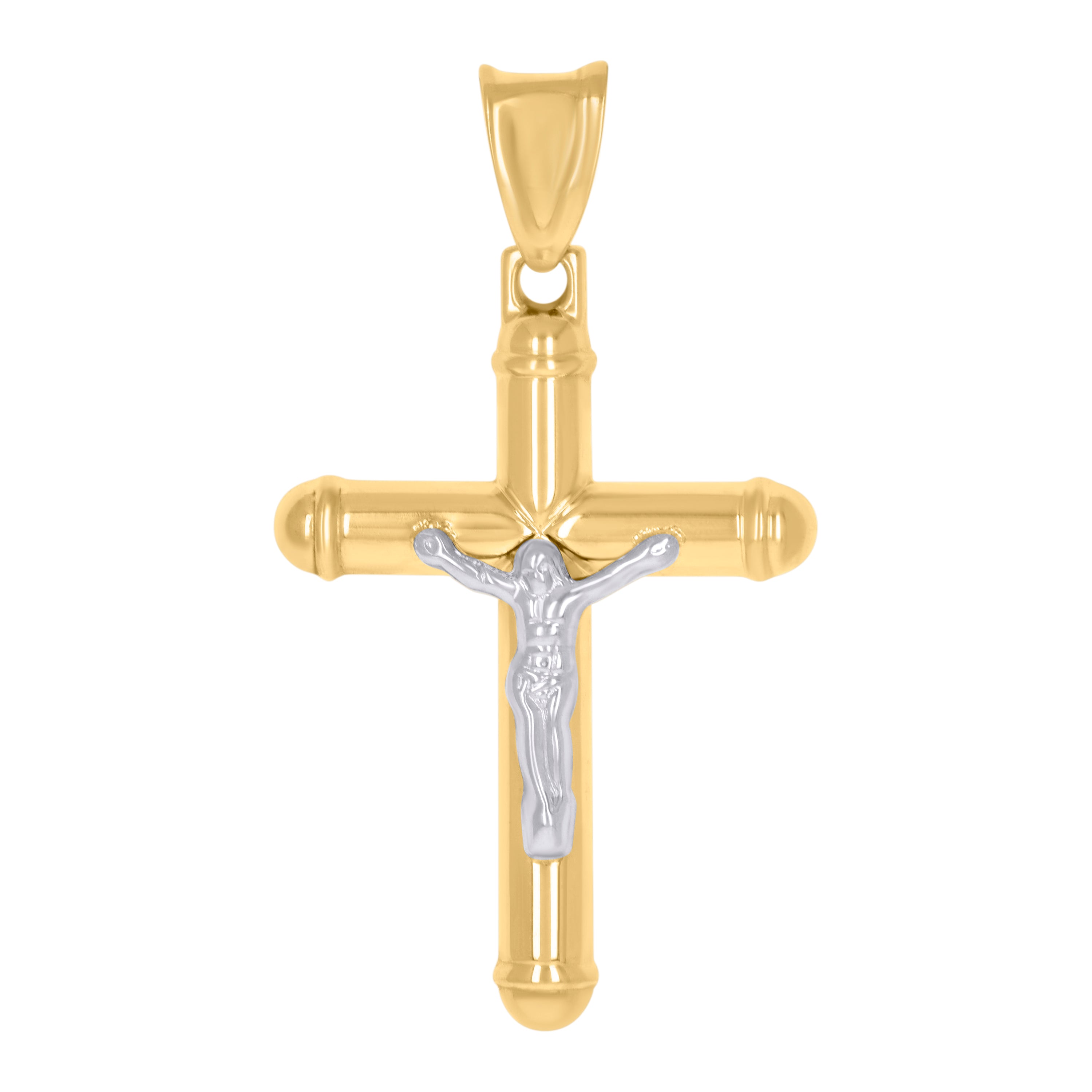 14kt Two-tone Gold Mens Crucifix Cross Religious Charm Pendant