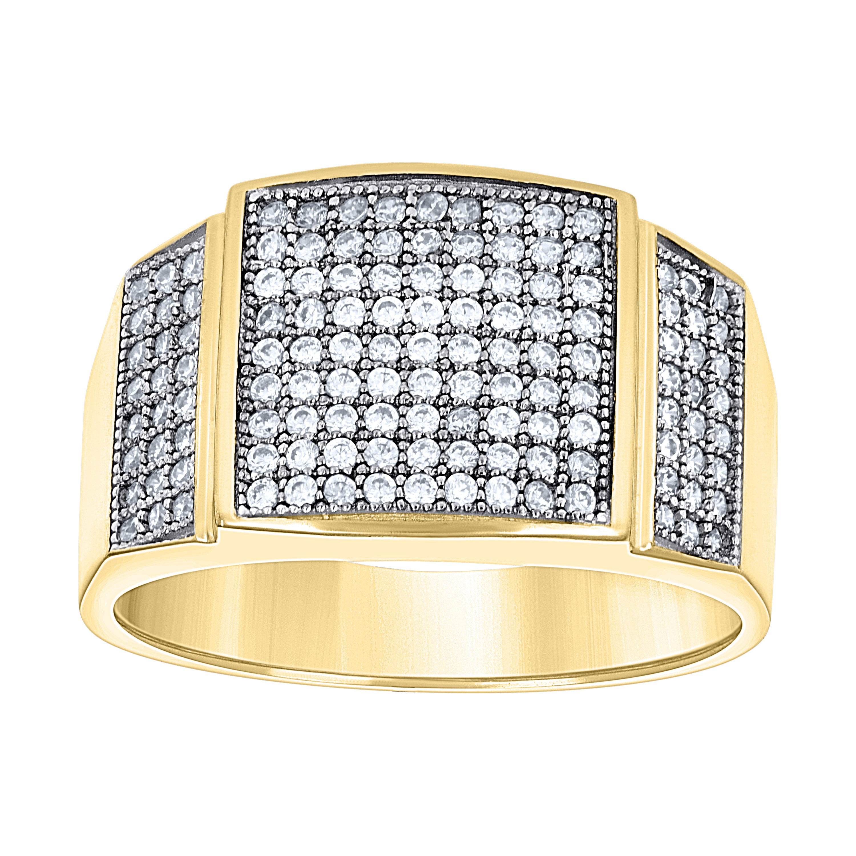 14kt Two-tone Gold Mens Cubic Zirconia Cluster Square Head Ring