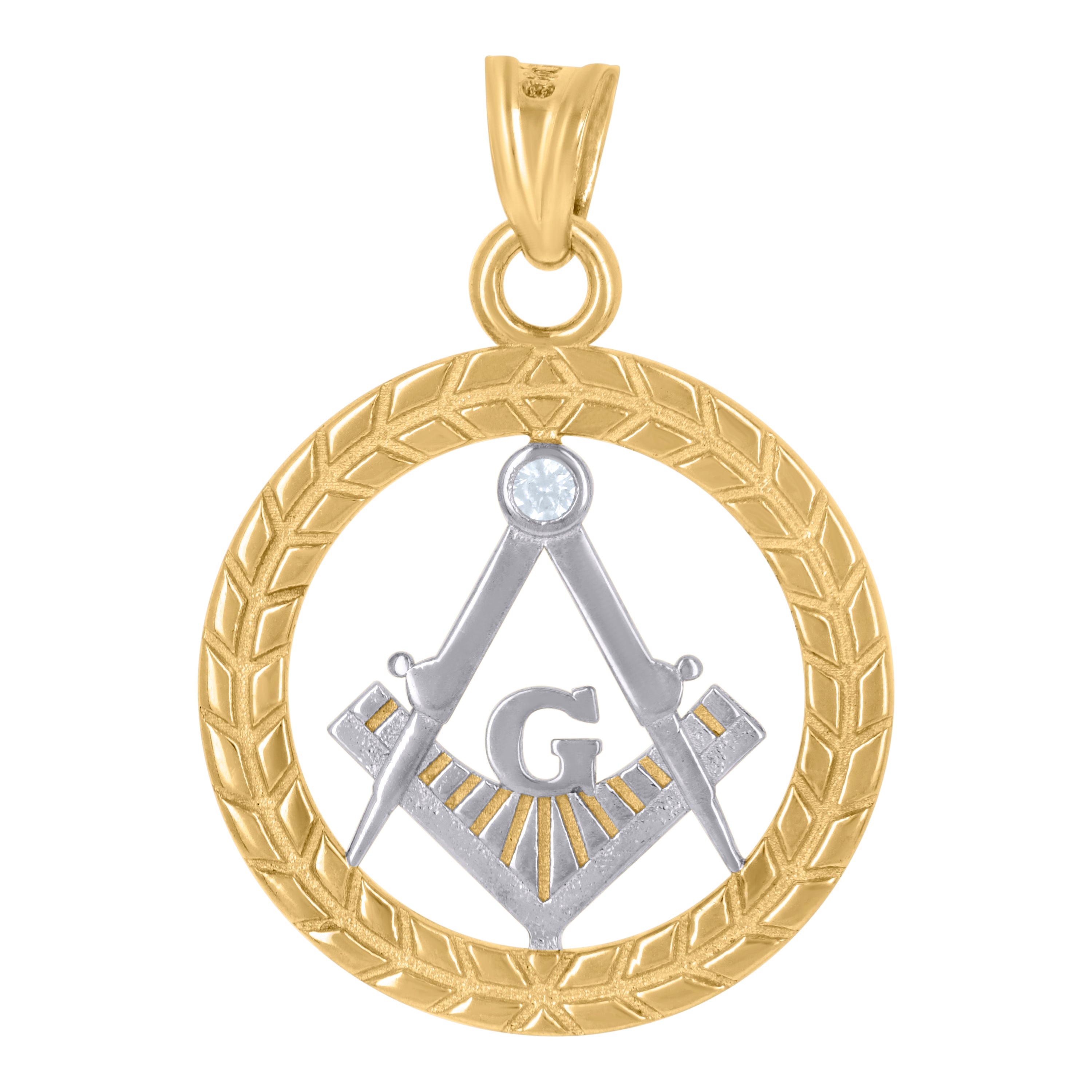 14Kt Two-Tone Gold Mens Cubic-Zirconia Masonic Symbol Religious Charm Pendant