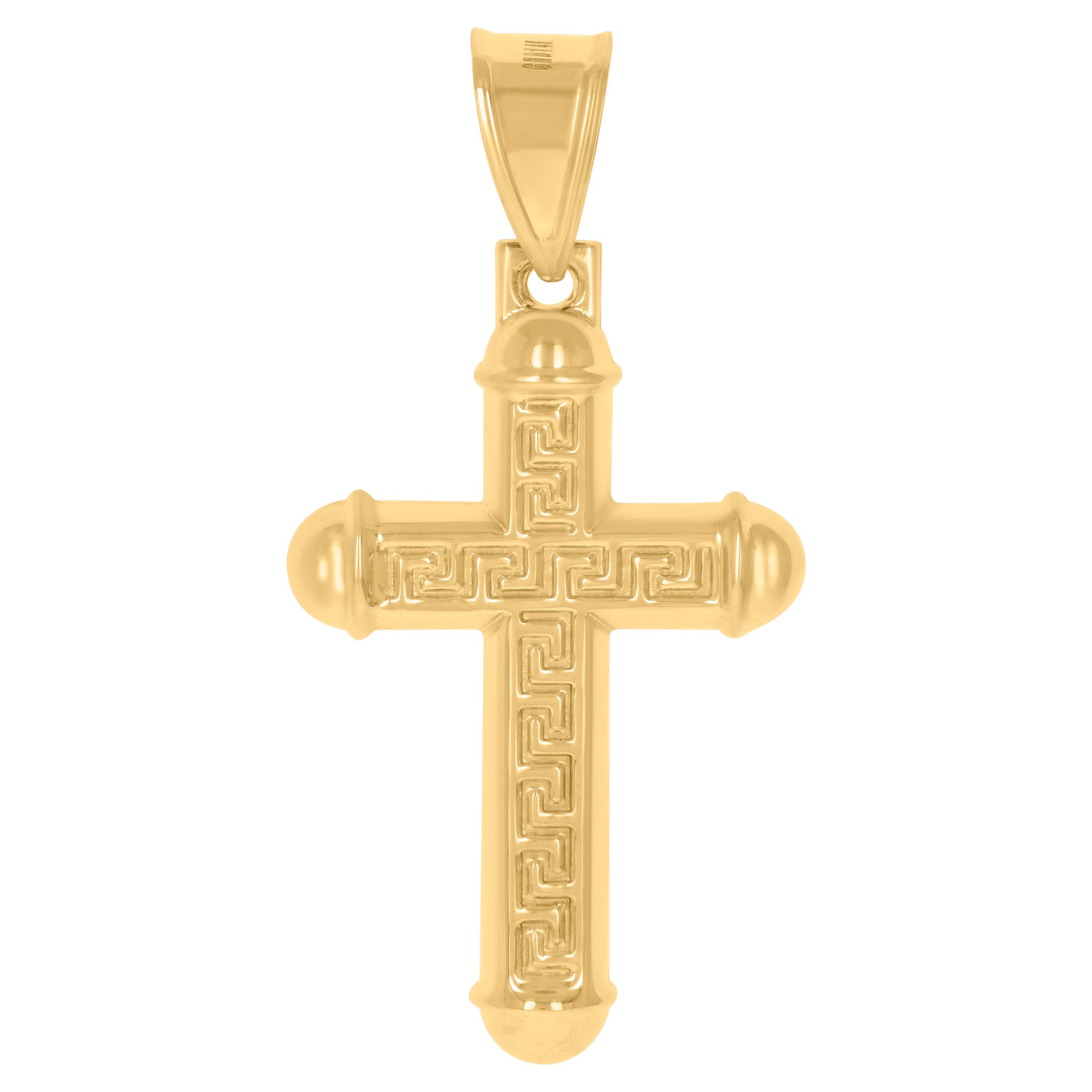 14kt Two-Tone Gold Mens Greek Key Cross Religious Charm Pendant