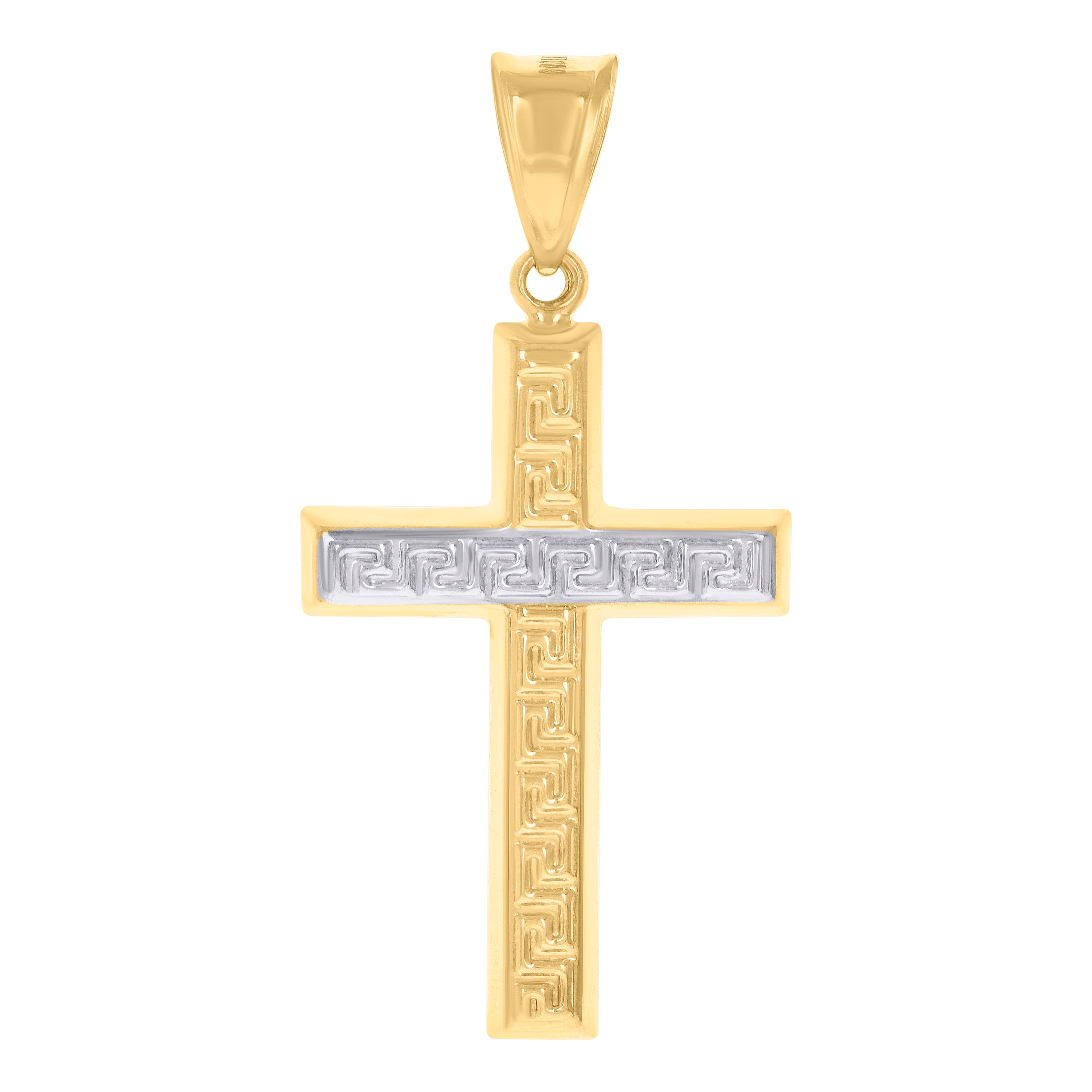14kt Two-tone Gold Unisex Greek Key Cross Religious Charm Pendant