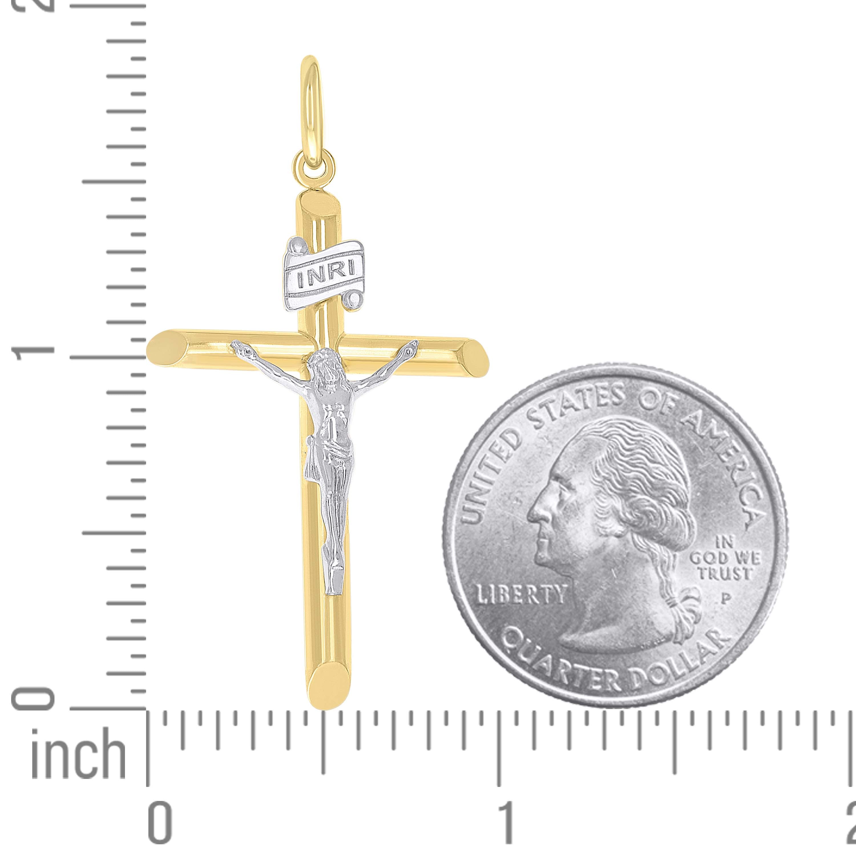 14kt Two-tone Gold Unisex INRI Crucifix Cross Religious Charm Pendant