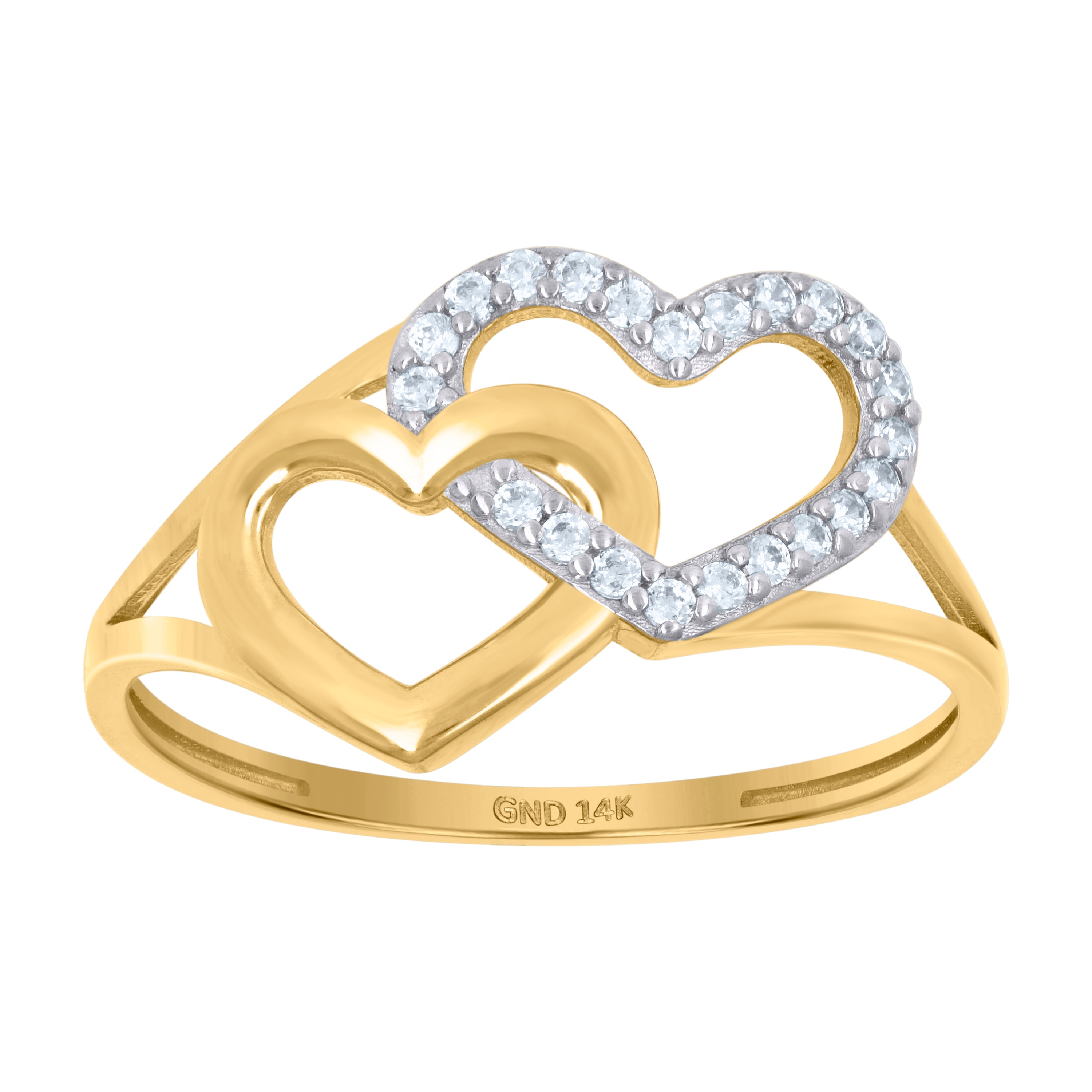 14kt Two-Tone Gold Womens Cubic-Zirconia Intertwined Hearts Ring