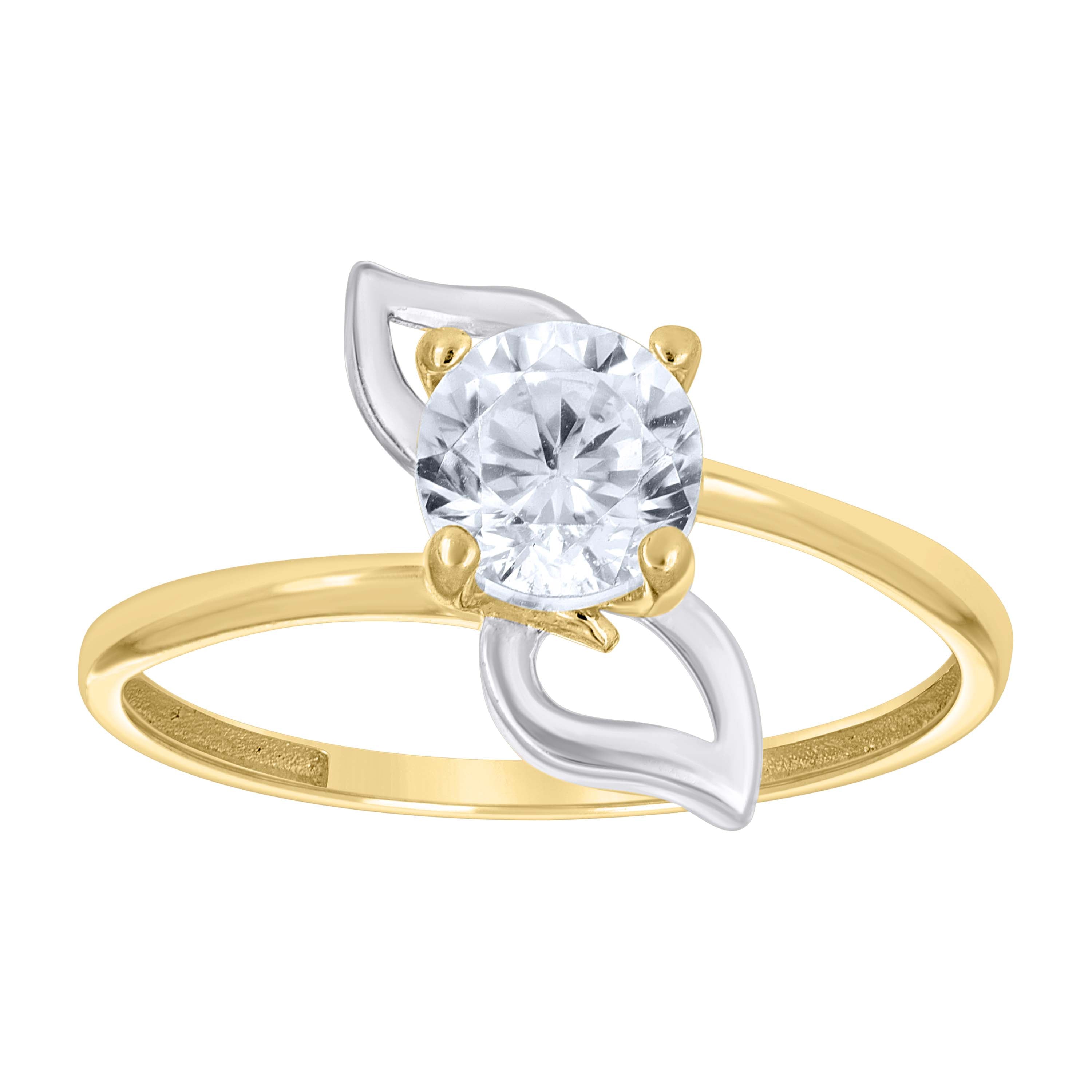 Discover elegance with our 14Kt Two-Tone Gold Women's Cubic Zirconia Leaf Engagement Ring. Weighing a delicate 1.88 grams, this piece boasts a polished finish, with a height of 12.2MM and a sleek width of 1.2MM. The prong-set round white cubic zirconia adds a sparkling allure, making it a perfect symbol of love and commitment.