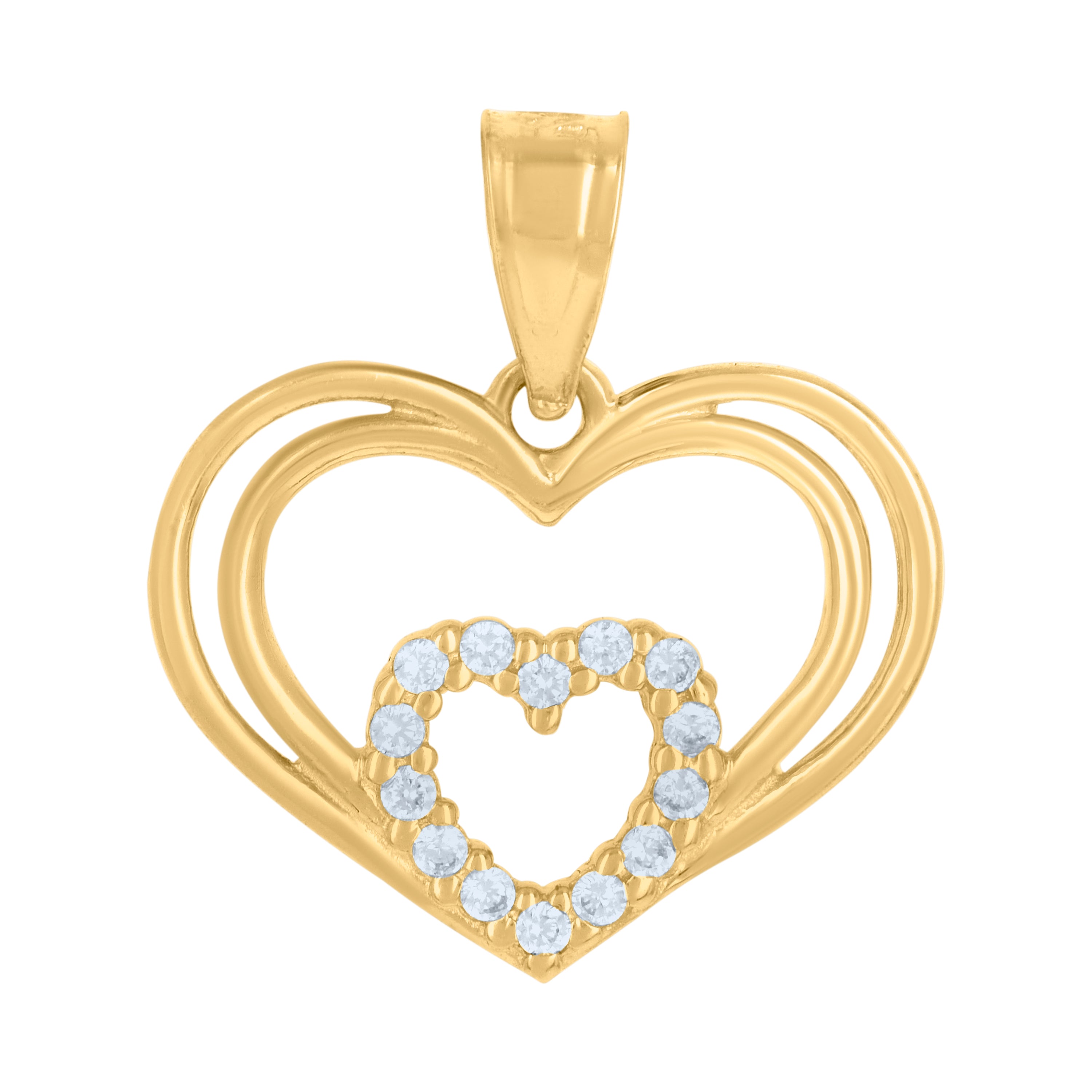 Illuminate your elegance with this exquisite 14Kt Two-Tone Gold Women's Heart Pendant. Weighing a delicate 0.8 grams, this polished charm features a stunning round white cubic zirconia set in a classic prong setting, capturing light with every movement. With dimensions of 16.3MM in height and 15.1MM in width, and elegantly secured by a single bail closure, this pendant is the perfect blend of sophistication and modern allure. Ideal for any occasion, let your heart shine with timeless beauty.
