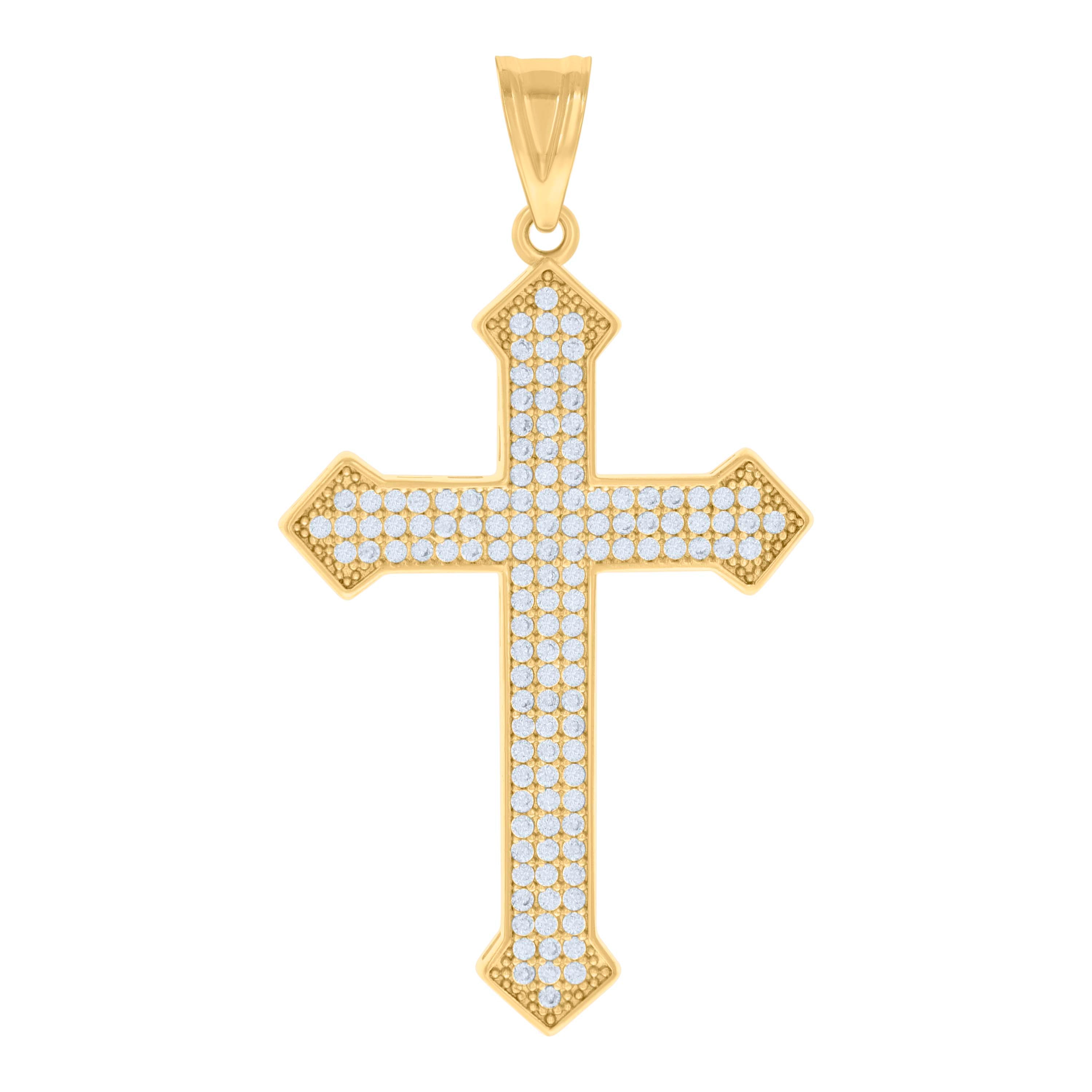 14kt Yellow Gold Men Cubic-Zirconia Cross Religious Charm Pendant