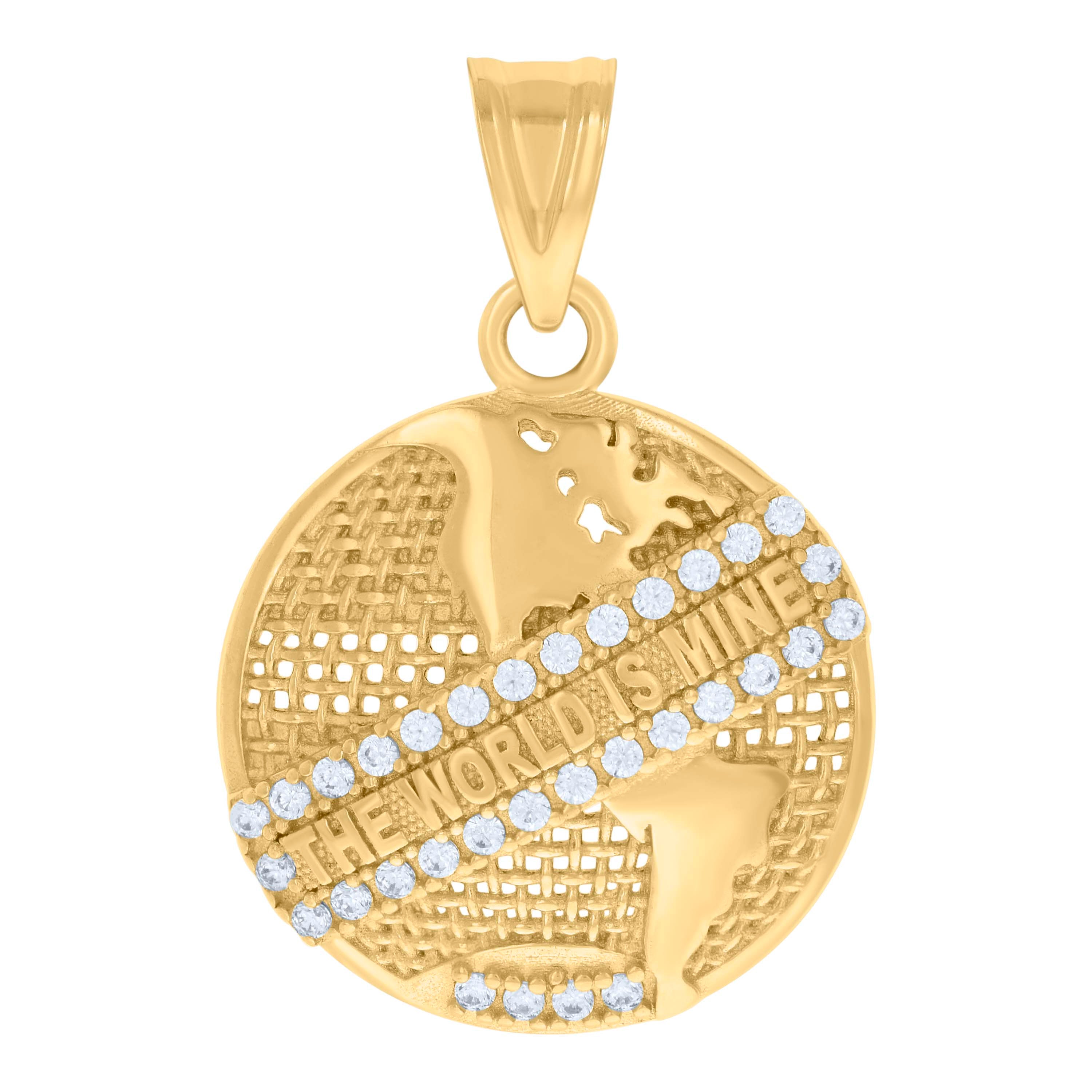 14kt Yellow Gold Men Cubic-Zirconia The World Is Mine Globe Charm Pendant