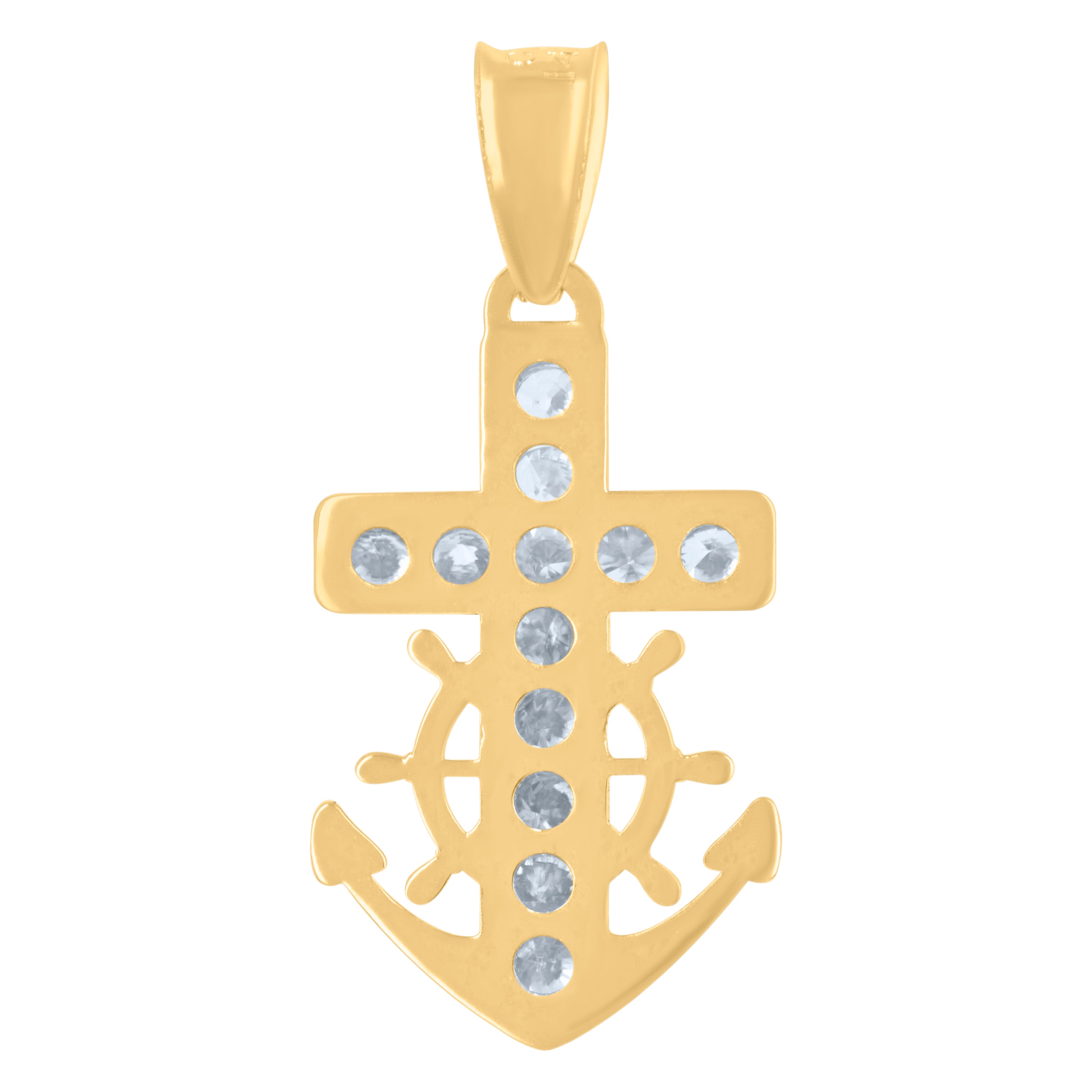 14Kt Yellow Gold Mens Cubic-Zirconia Anchor Crucifix Religious Charm Pendant