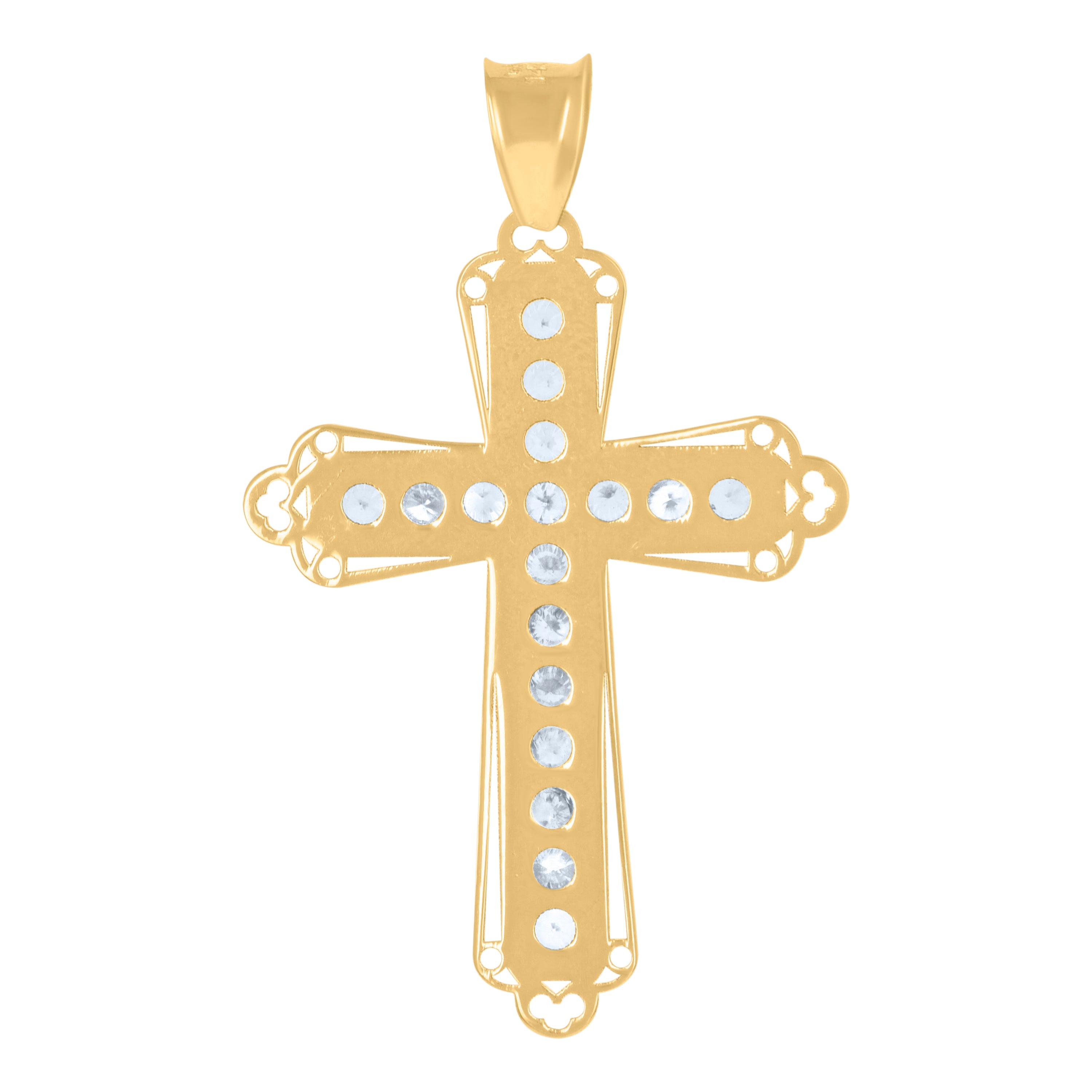 14Kt Yellow Gold Mens Cubic-Zirconia Crucifix Cross Religious Charm Pendant