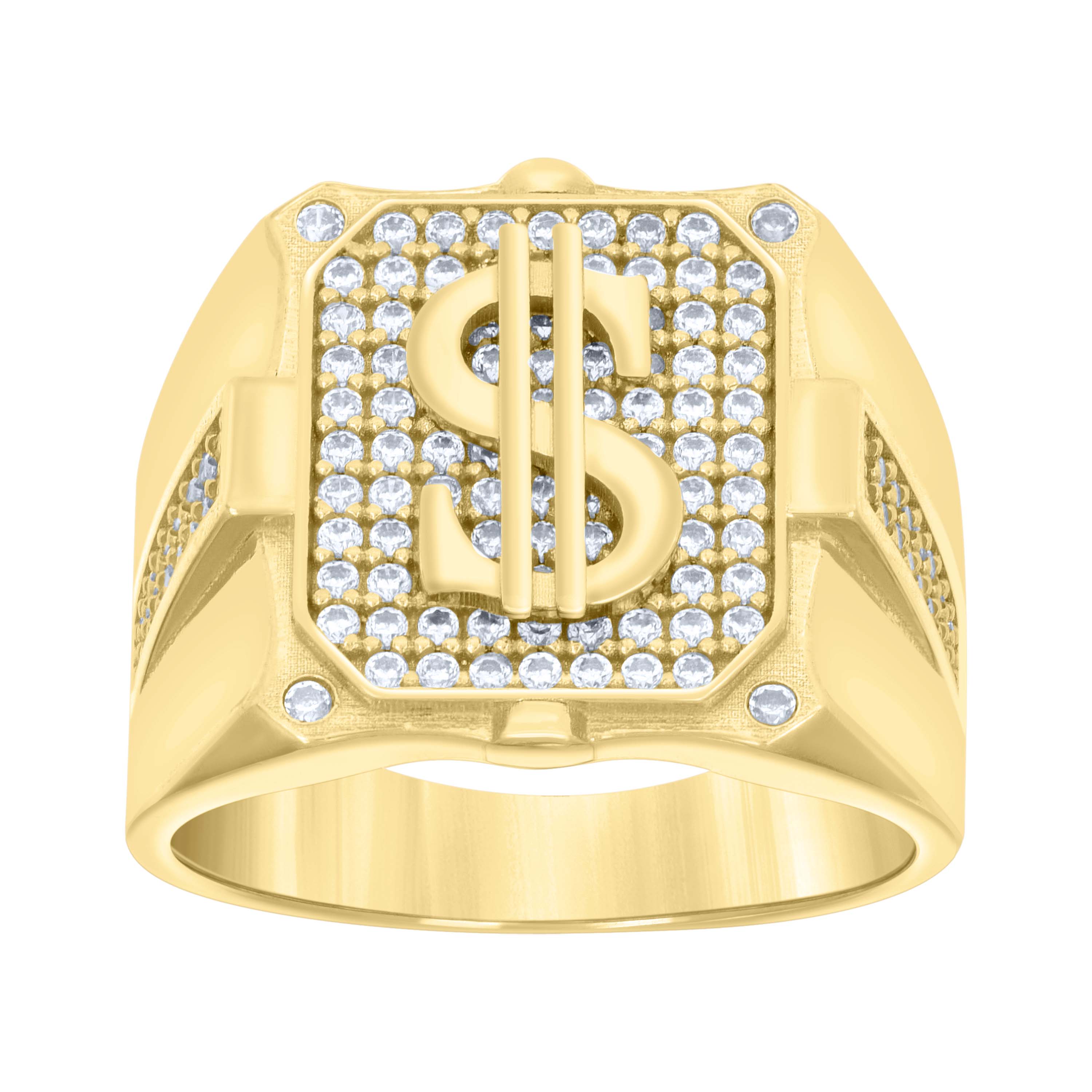 14kt Yellow Gold Mens Cubic-Zirconia Dollar Sign Currency Fashion Ring