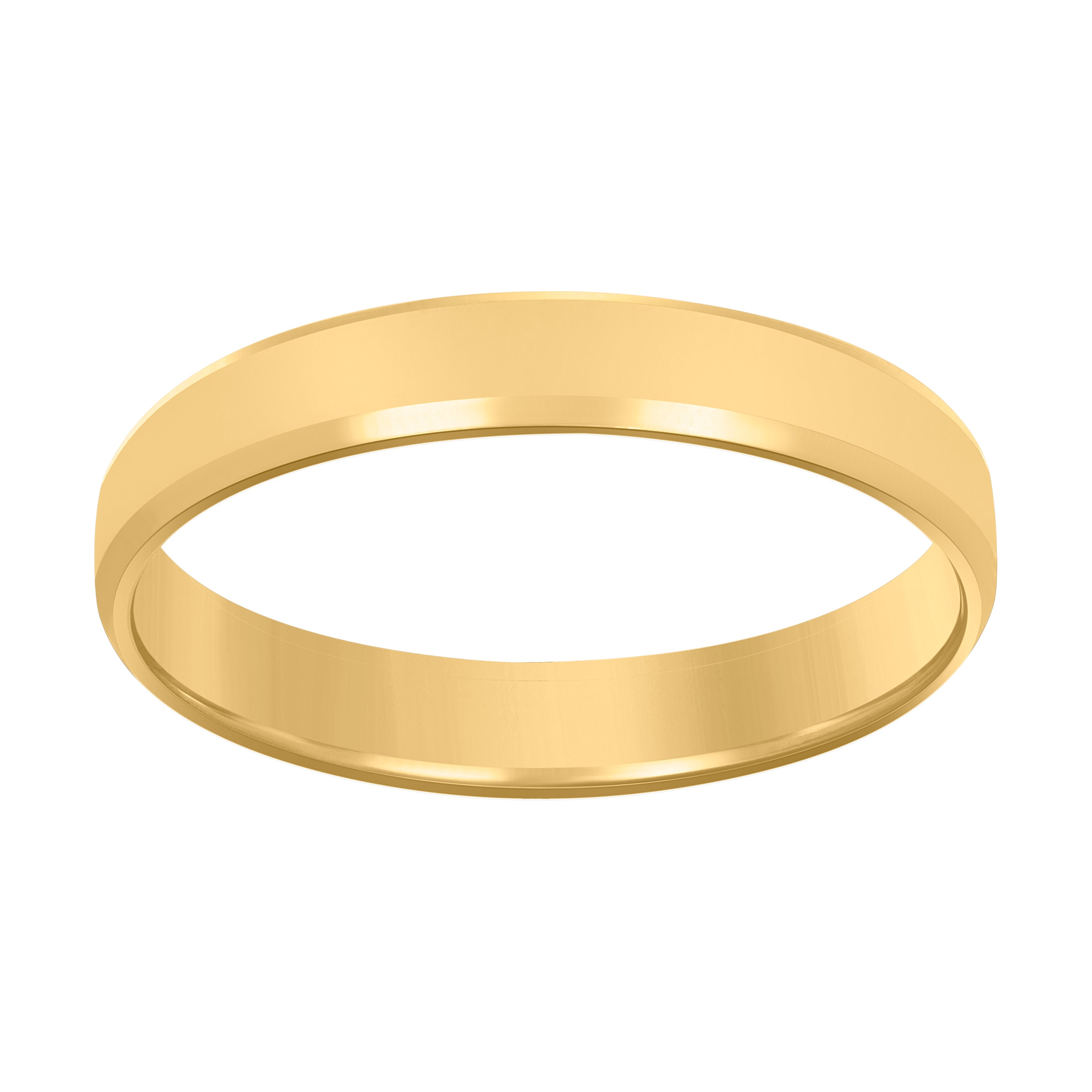 Crafted in solid 14kt yellow gold, this men’s wedding band features a modern flat center with sleek beveled edges for a refined, masculine look. Measuring 4 mm in width and finished with a high-polish shine, it delivers timeless style with everyday comfort. Lightweight at approximately 2.5 grams and designed in size 9, this classic ring is free of stones for a clean, understated elegance that pairs effortlessly with any wardrobe. Perfect as a wedding band or sophisticated daily wear.