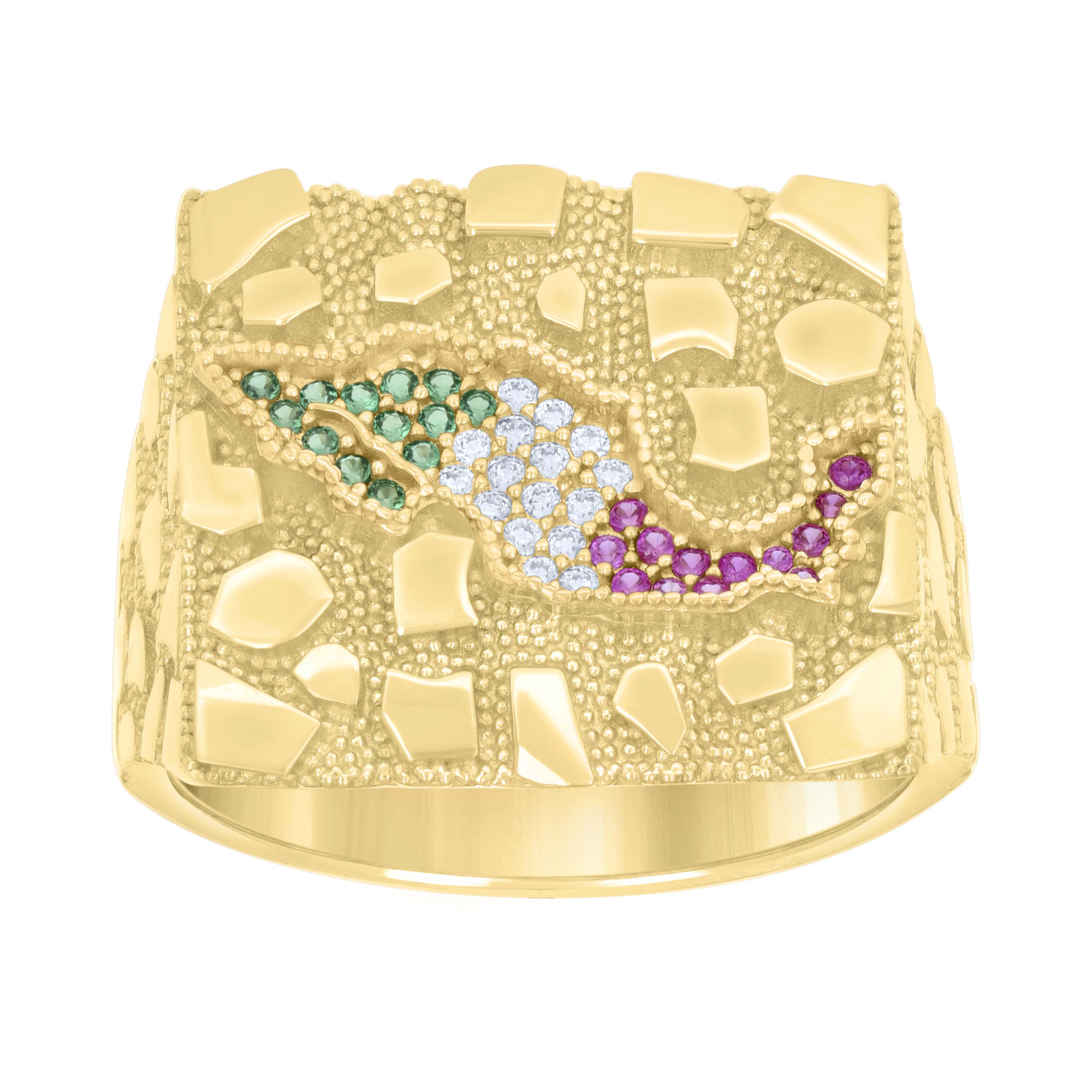 14kt Yellow Gold Mens Green/Purple White Cubic-Zirconia Nugget Mexico Map Country Ring
