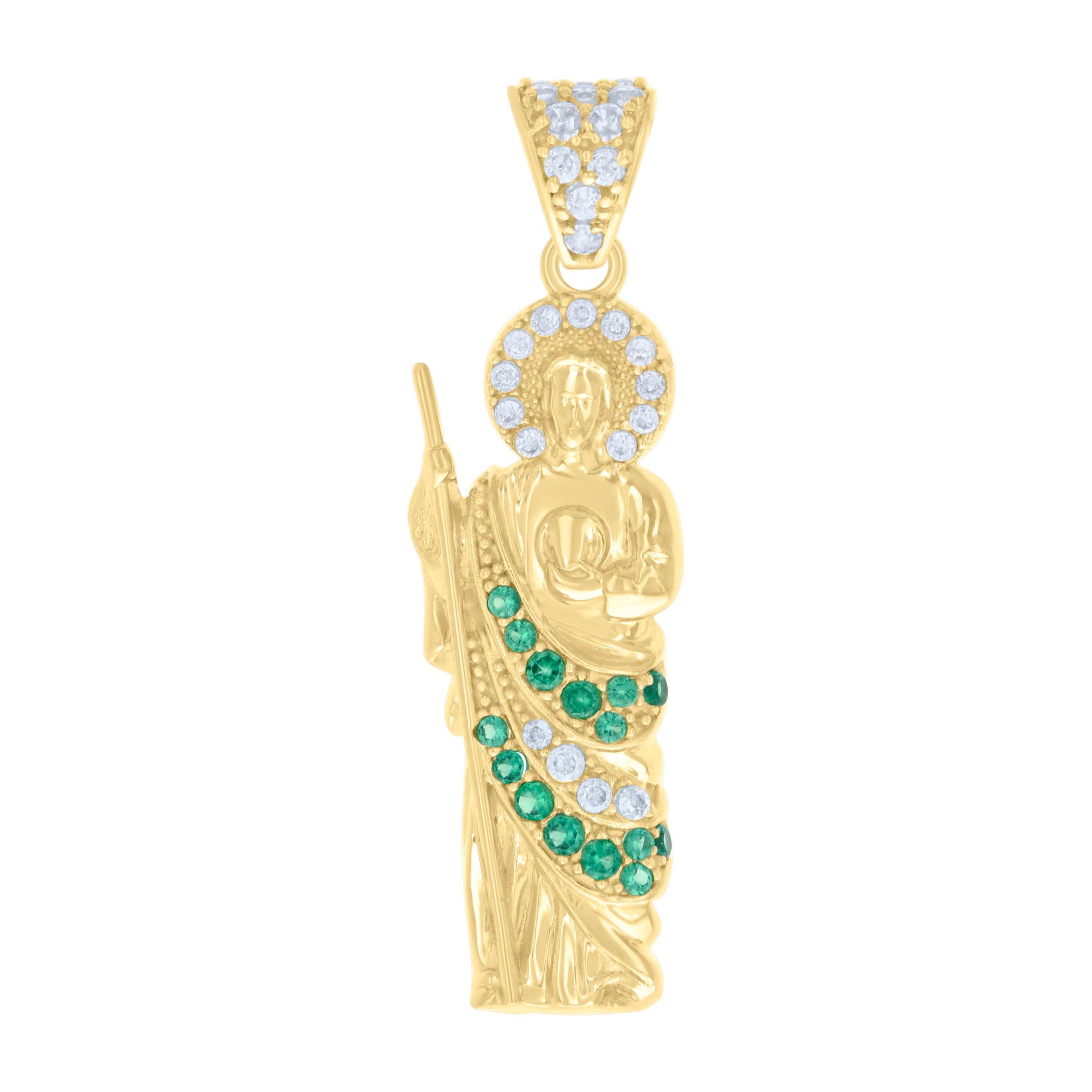 14kt Yellow Gold Mens Green White Cubic-Zirconia St. Jude Religious Charm Pendant