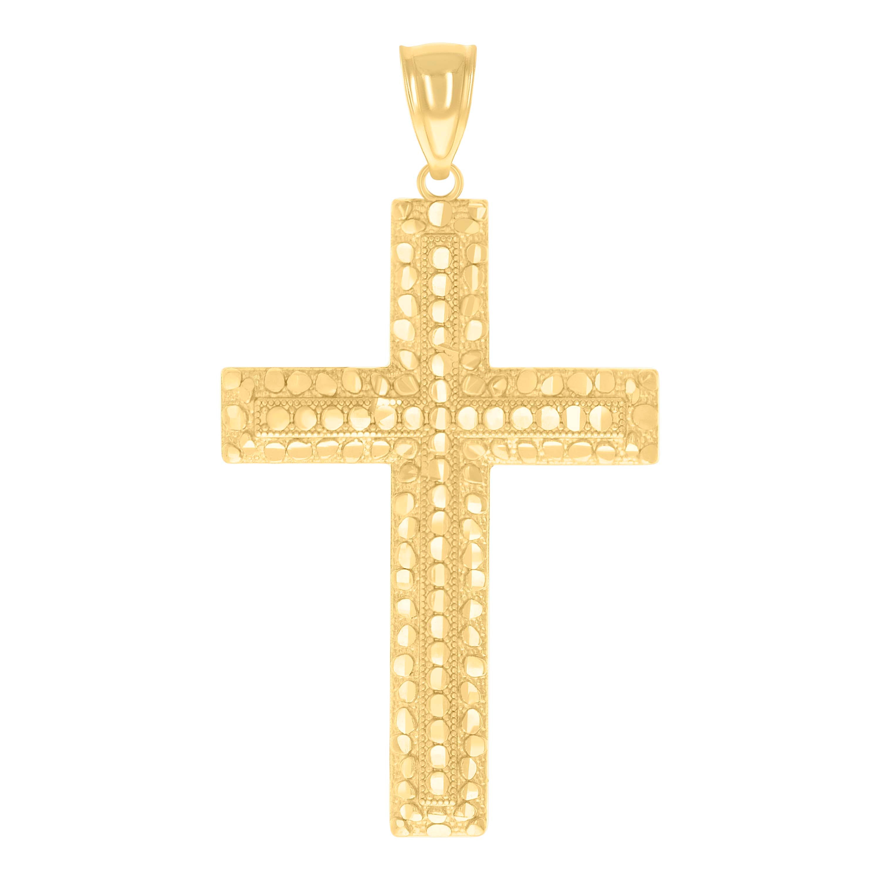 14Kt Yellow Gold Mens Nugget Cross Religious Charm Pendant