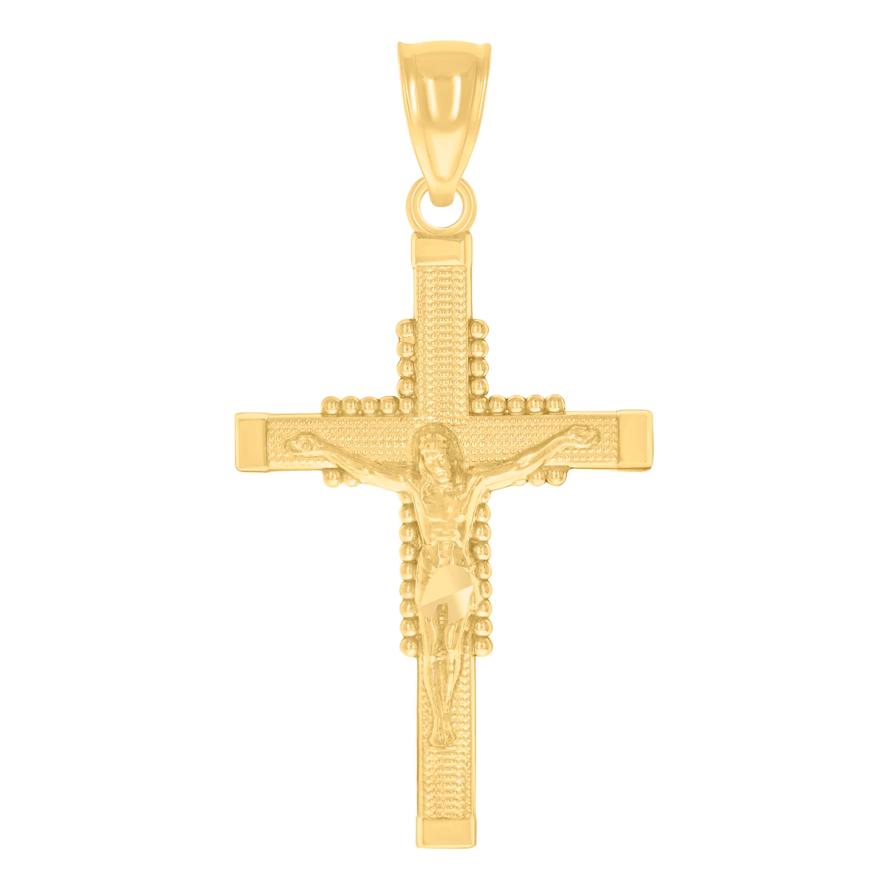14Kt Yellow Gold Unisex Cross Crucifix Ht:30.2Mm Religious Pendant Charm