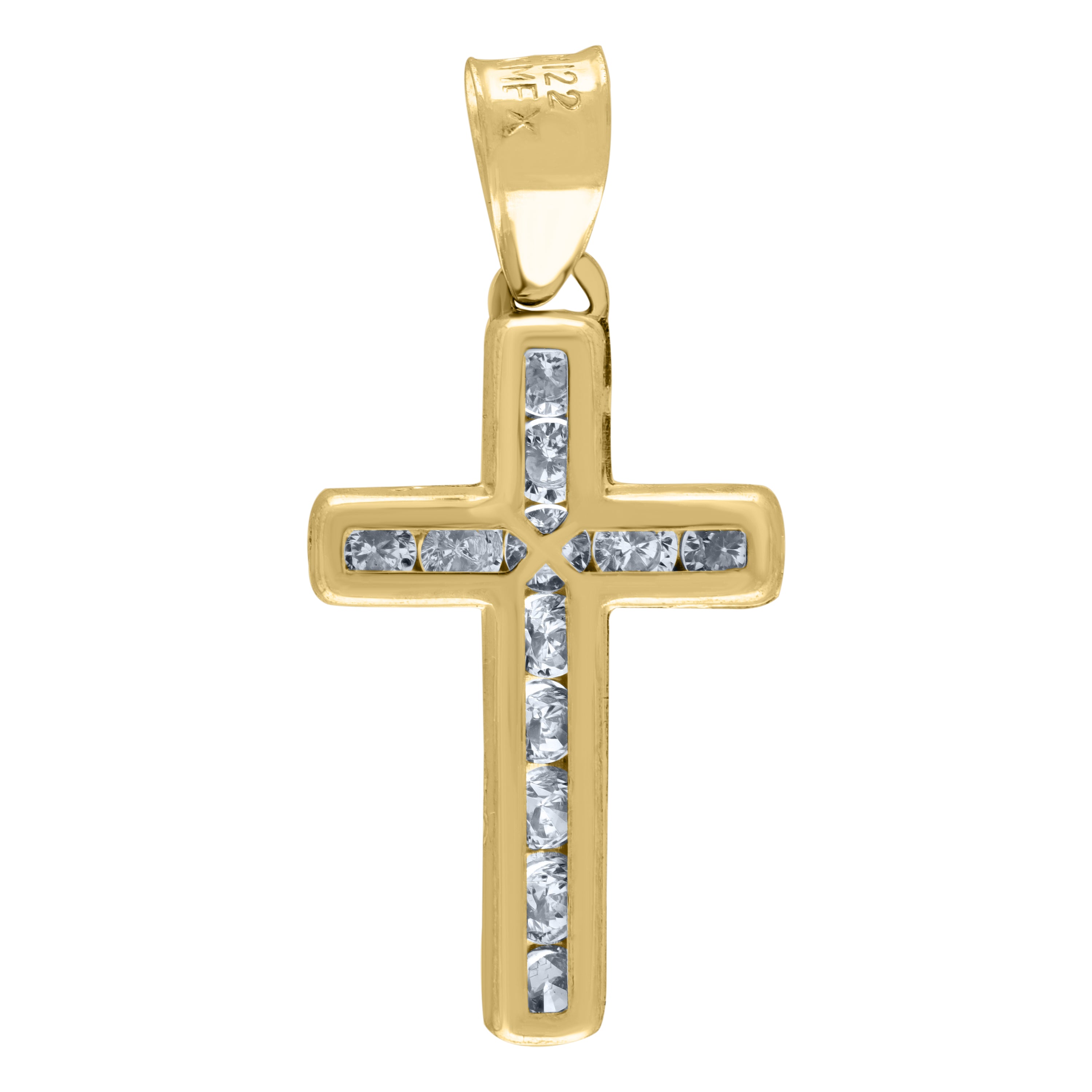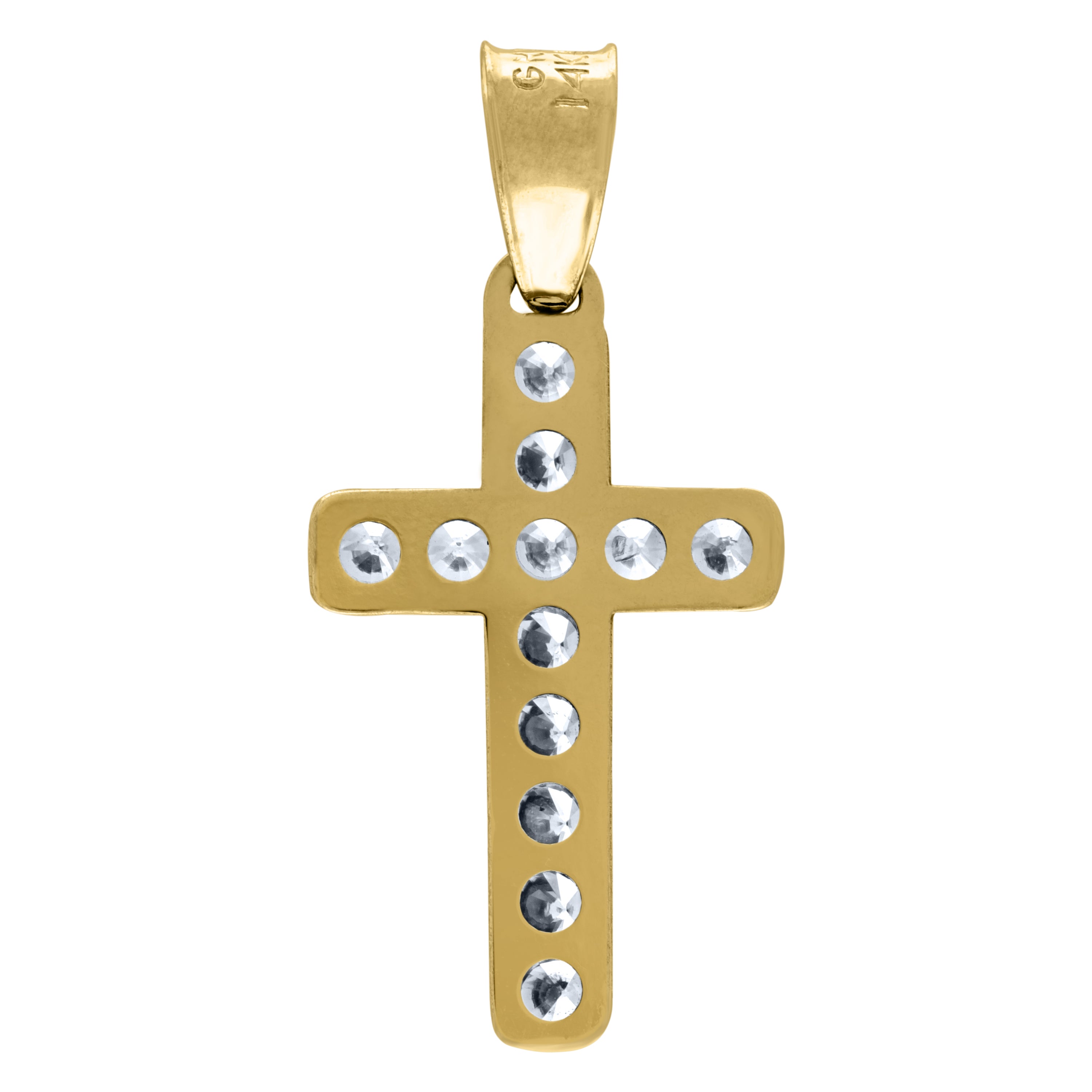 14kt Yellow Gold Unisex Cubic-Zirconia Cross Religious Charm Pendant