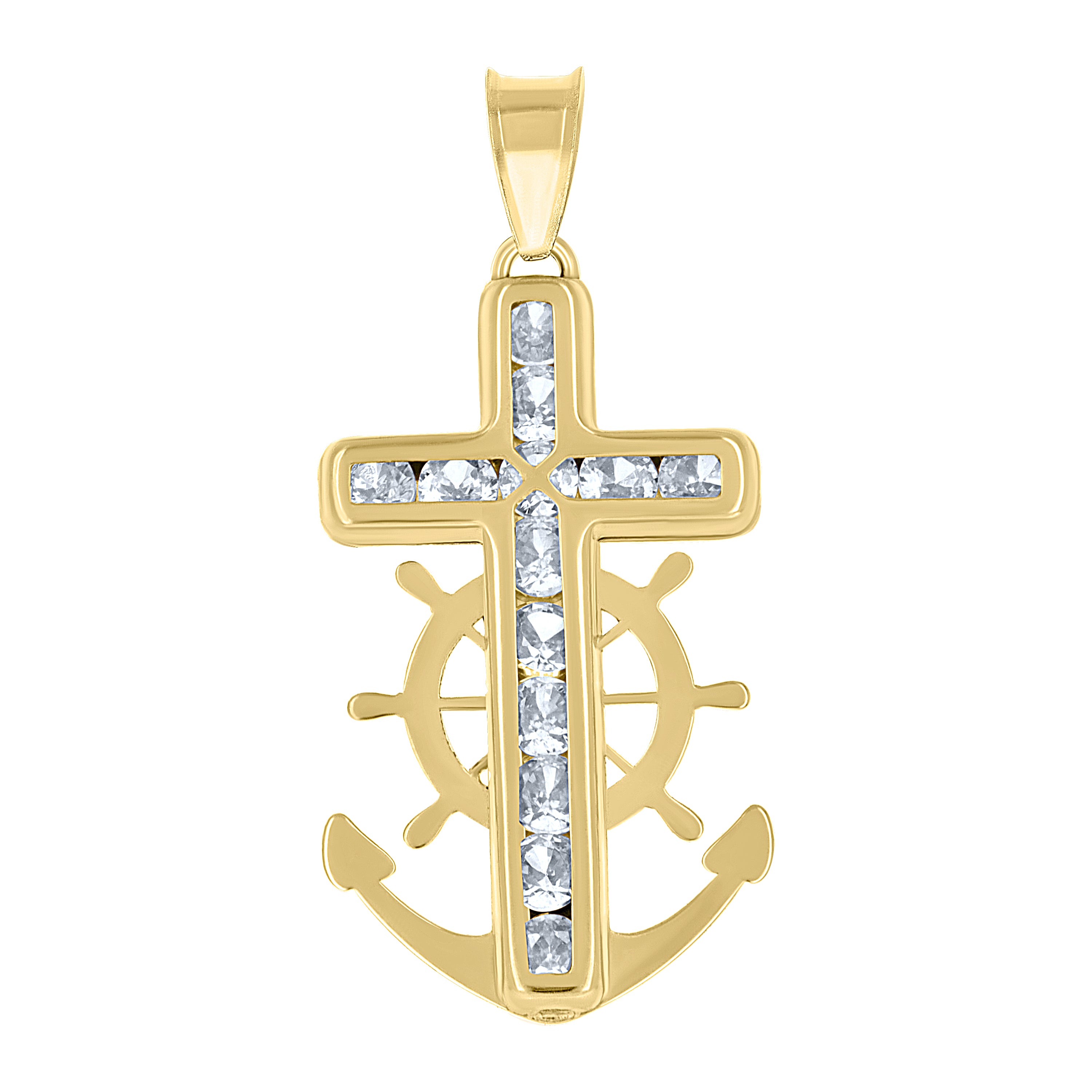 14Kt Yellow Gold Unisex Cz Anchor Cross Religious Charm Pendant