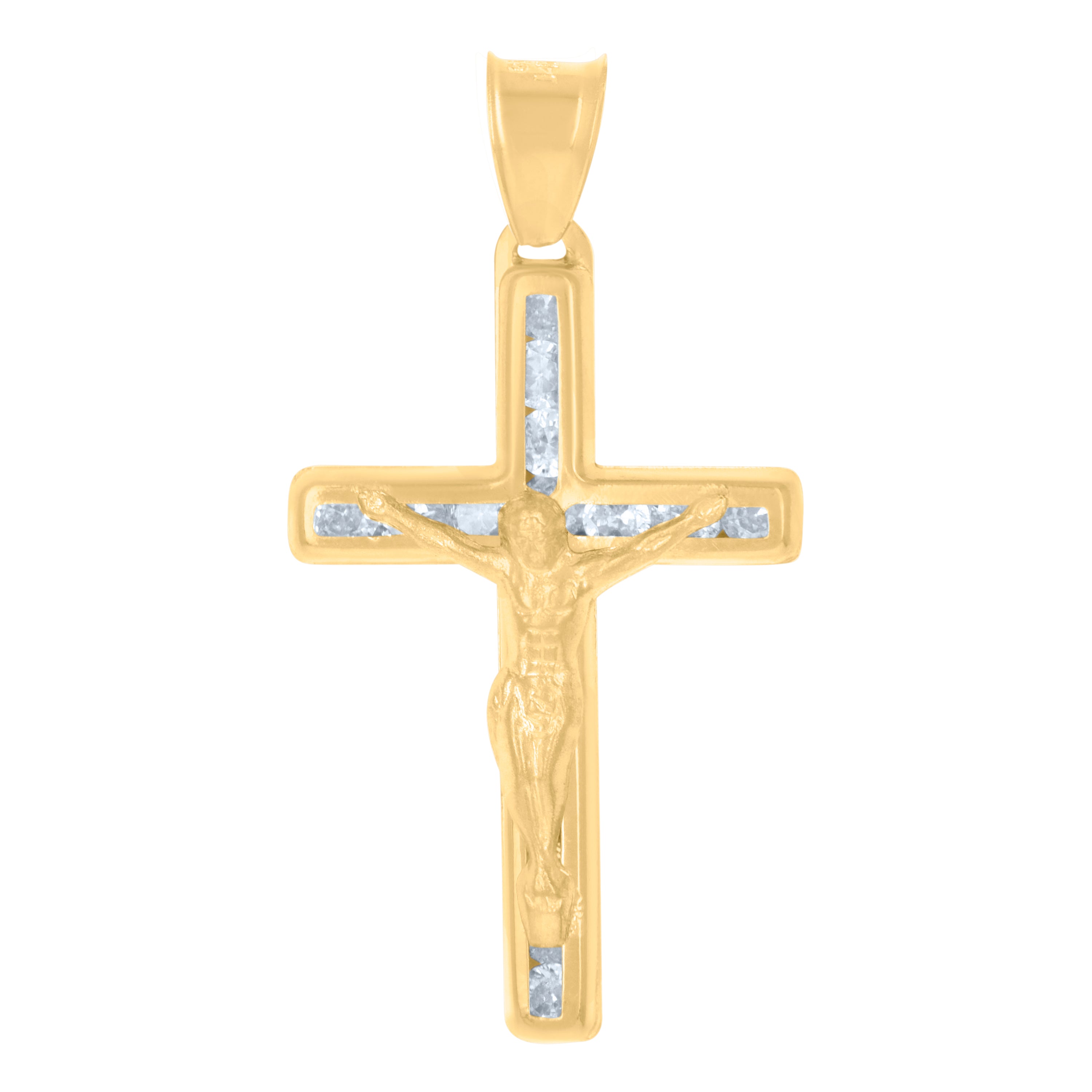 14Kt Yellow Gold Unisex Cz Crucifix Cross Religious Charm Pendant