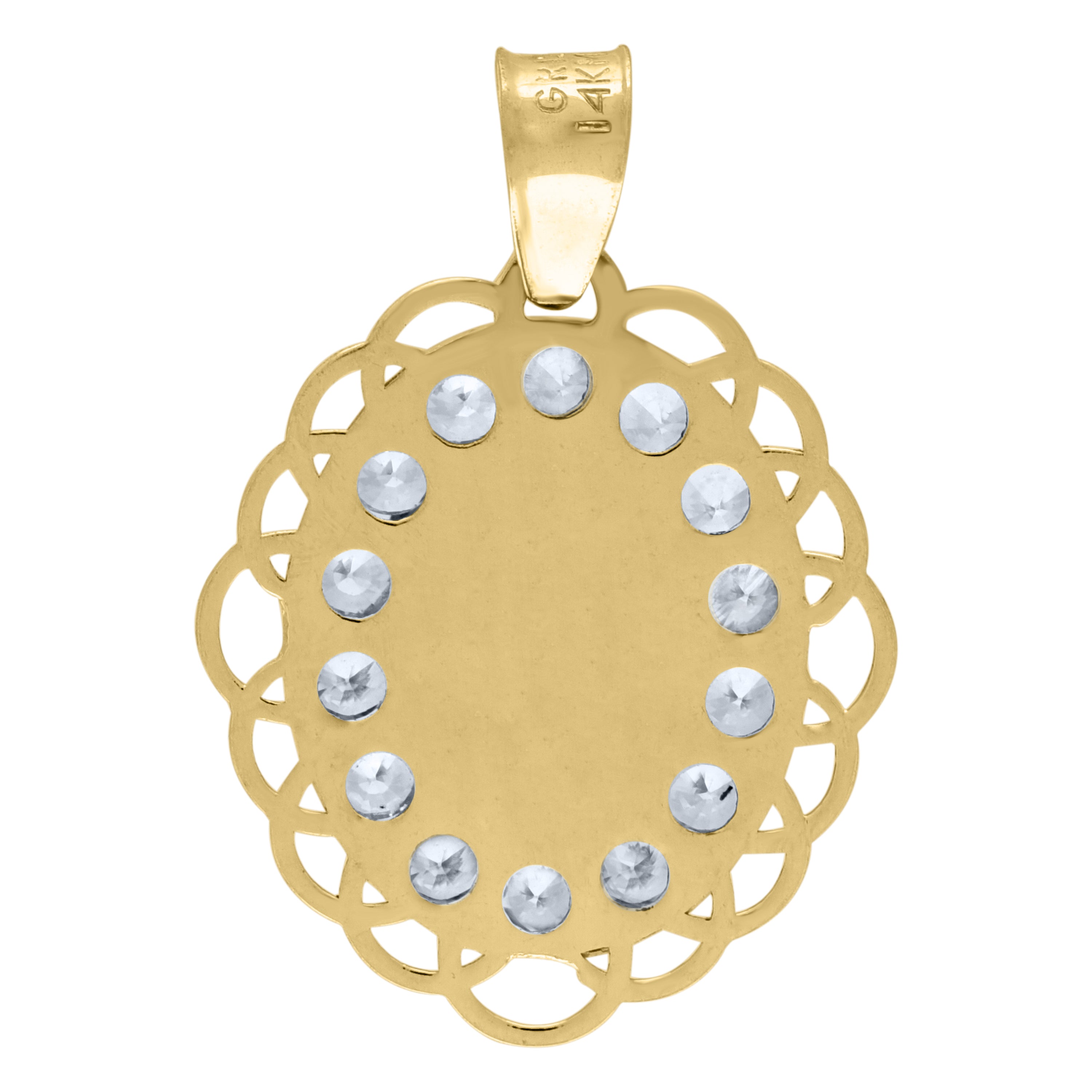 14Kt Yellow Gold Unisex Cz Textured Lady Of Guadalupe Religious Oval Charm Pendant