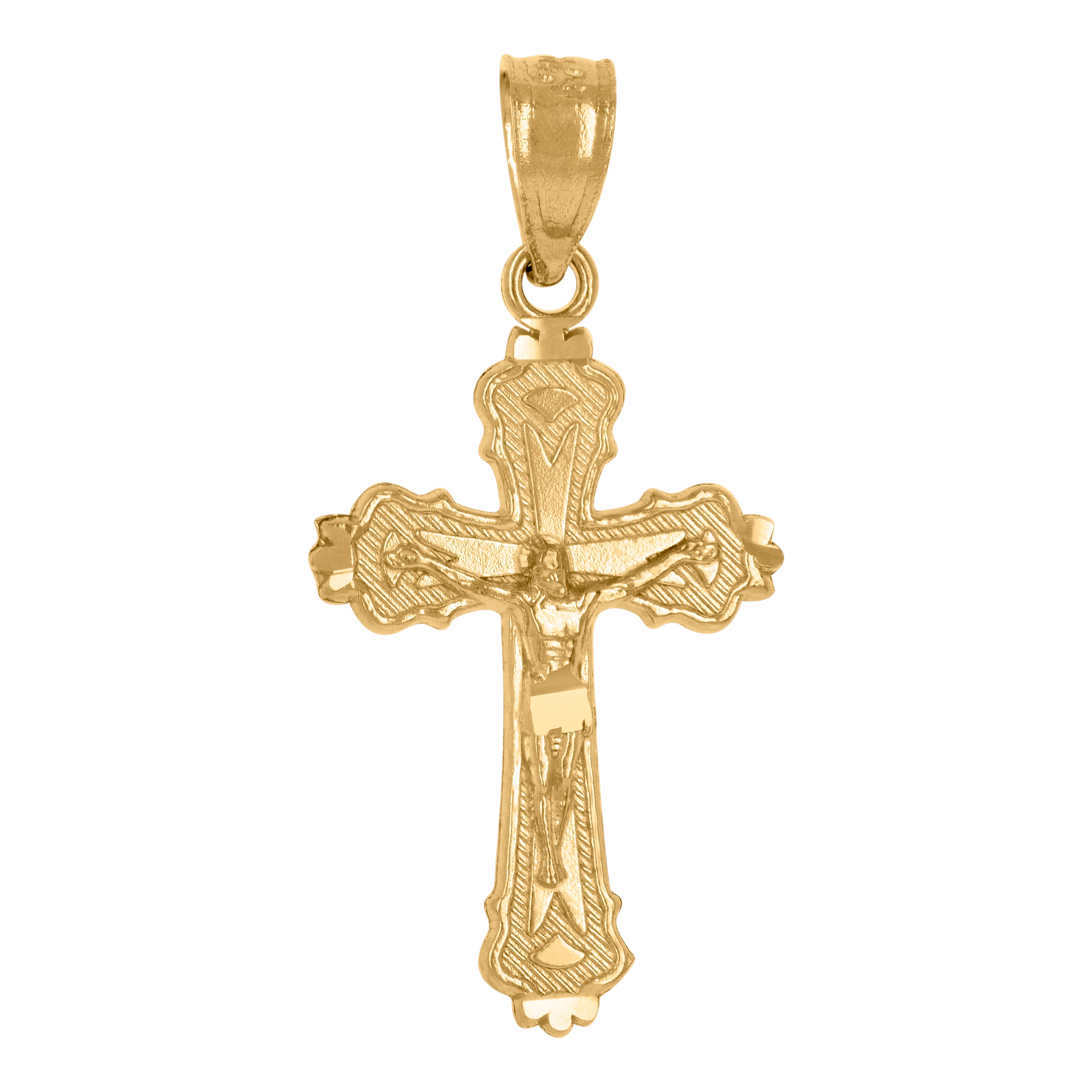14Kt Yellow Gold Unisex Diamond-Cut Cross Crucifix Religious Charm Pendant