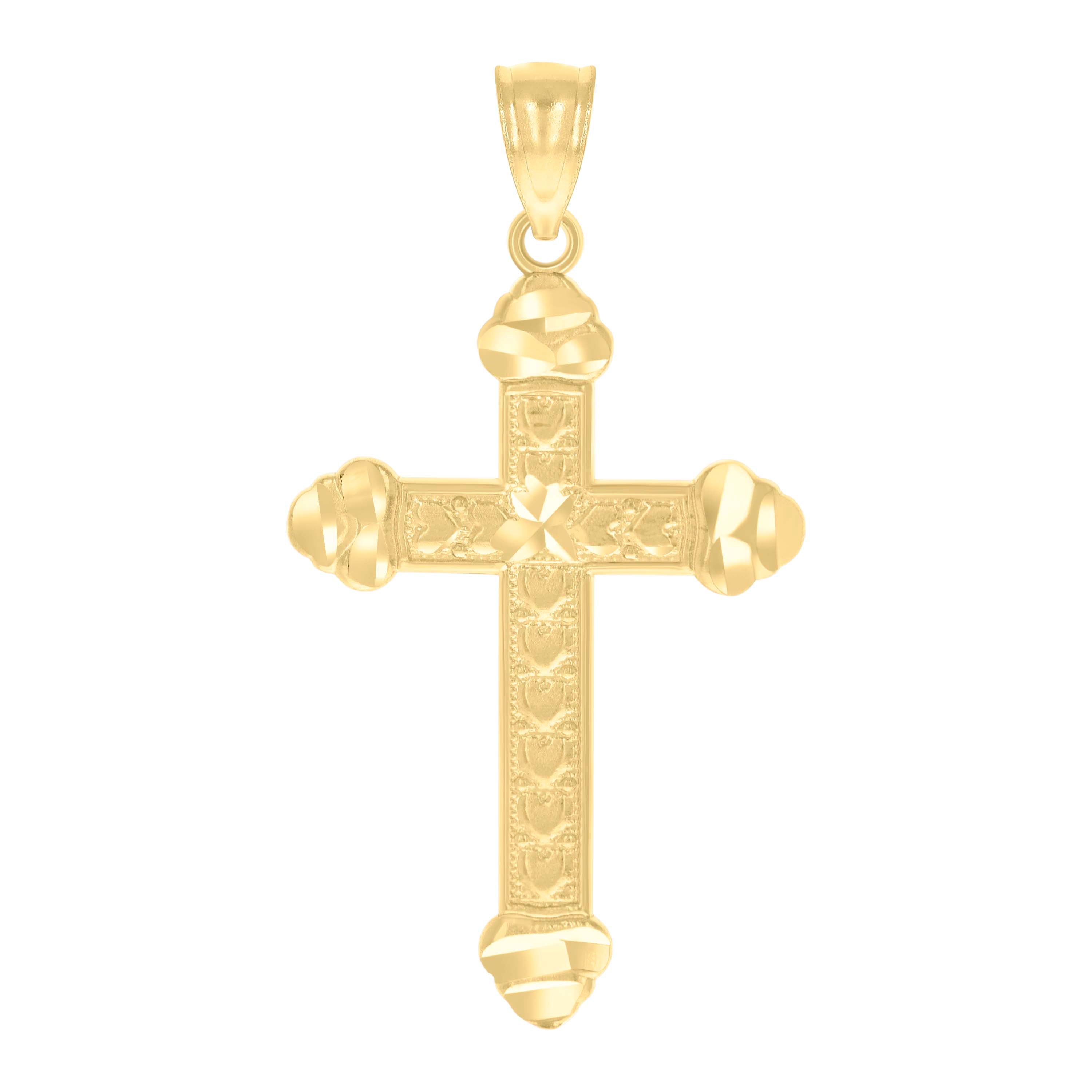 14Kt Yellow Gold Unisex Diamond-Cut Cross Hearts Religious Pendant Charm